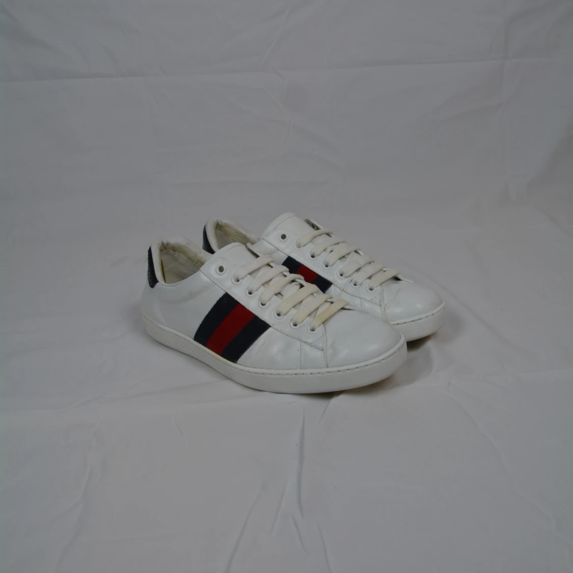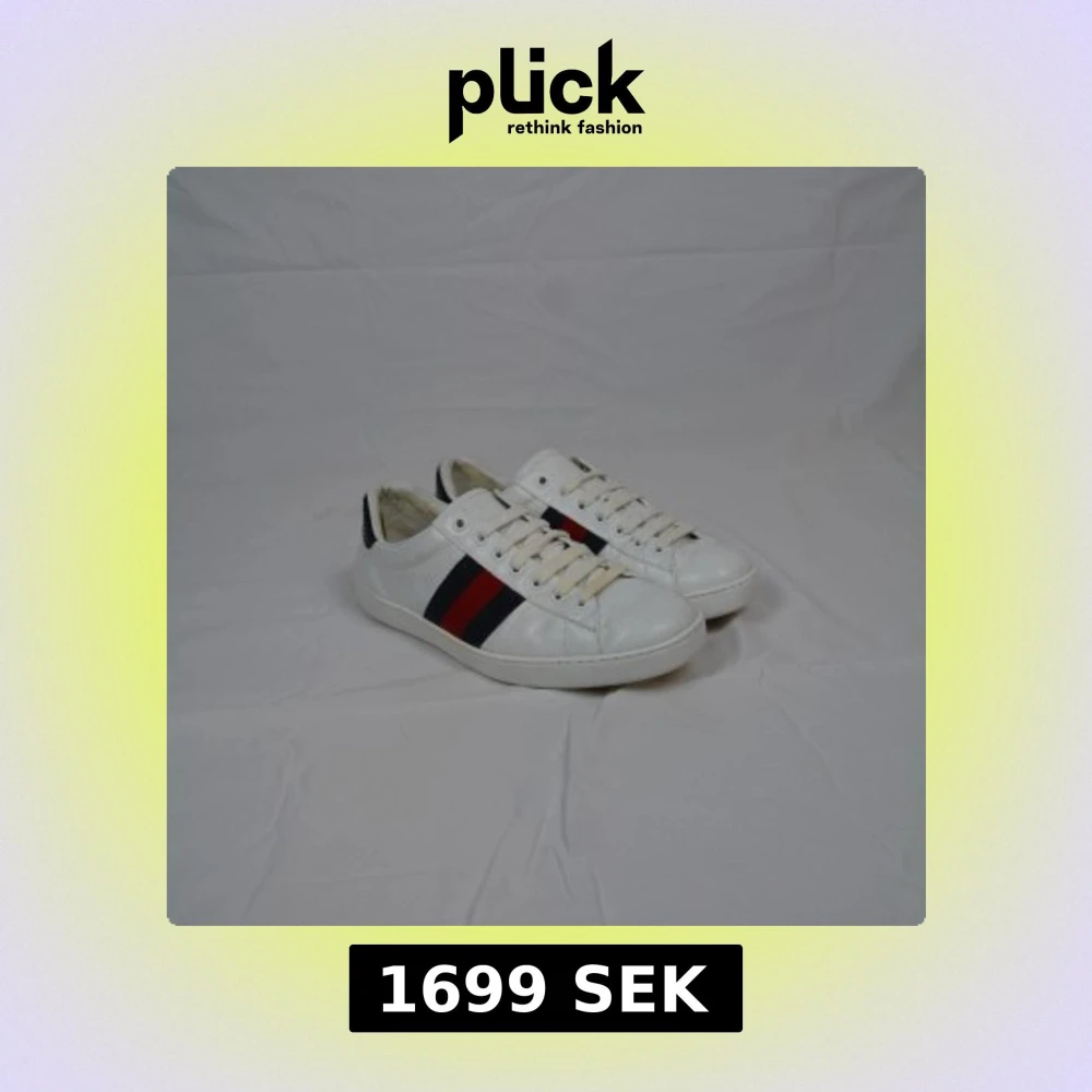 Riktigt feta Gucci Ace skor i storlek 41, passar även 42. Skorna har marinblå detaljer och är i väldigt bra skick. Vid frågor eller funderingar är det bara att höra av sig, och kom ihåg, alltid 14 dagars ångerrätt hos oss på Revalo!