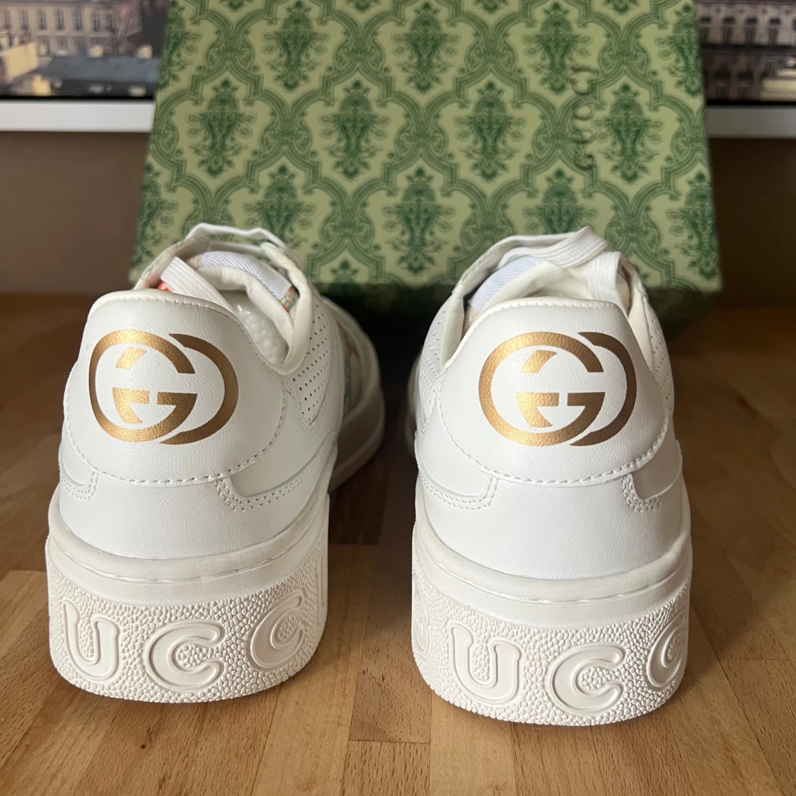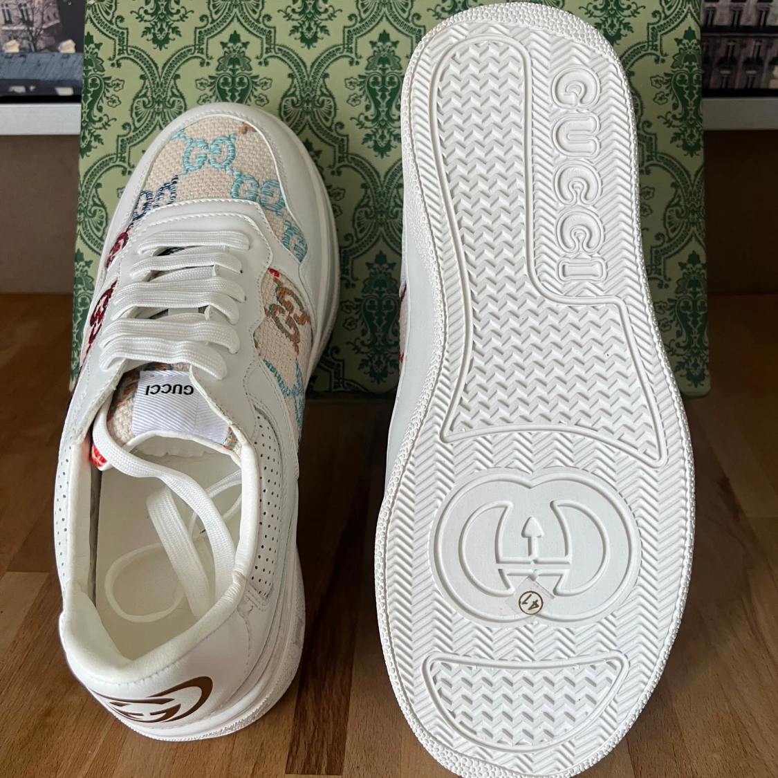 Gucci vita sneakers med färgglada GG-loggor