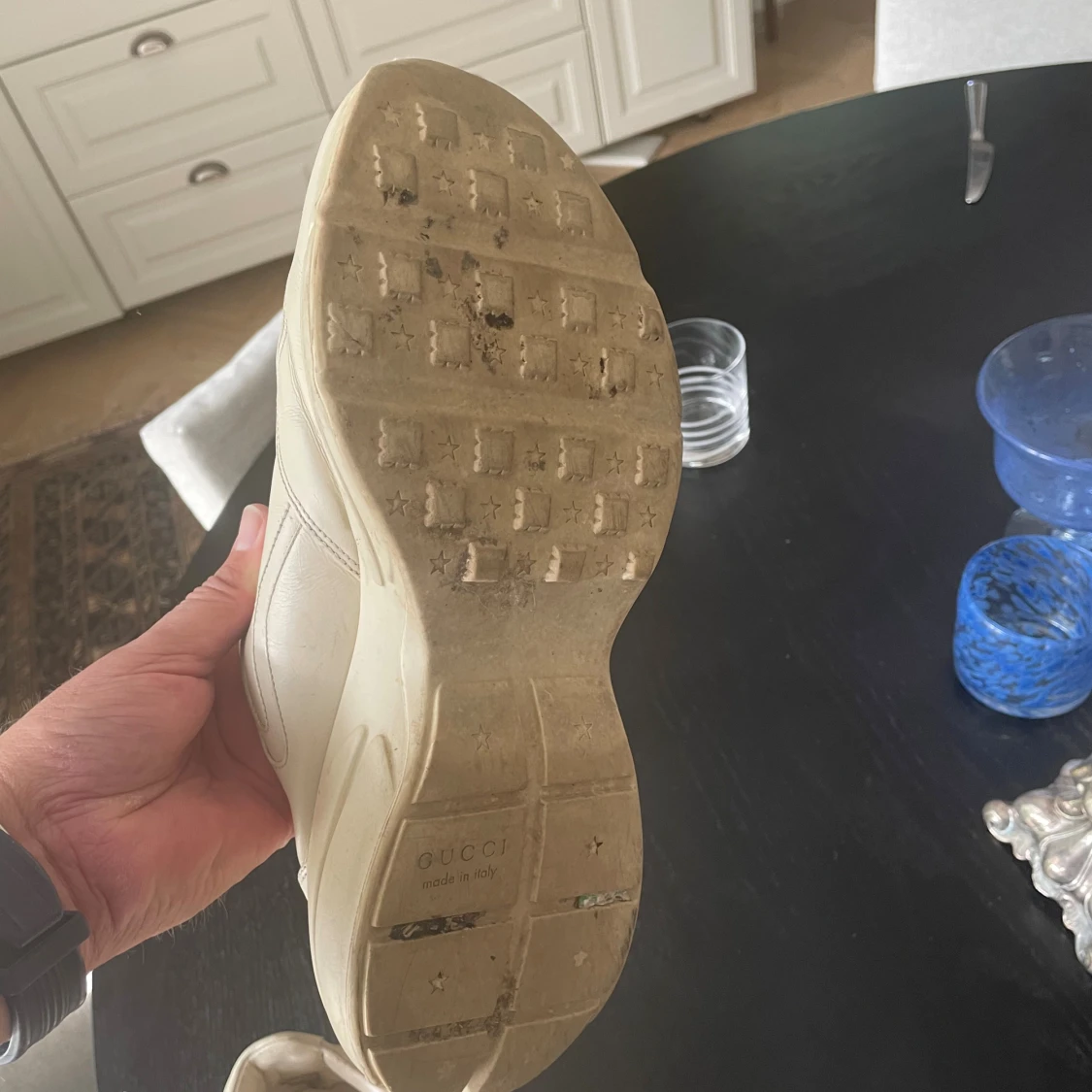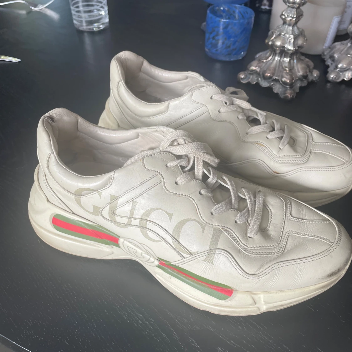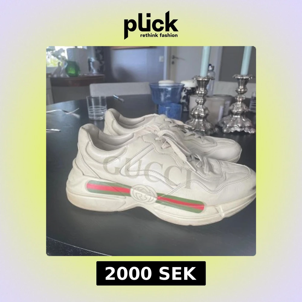 Gucci Rhyton sneakers i beige skinn