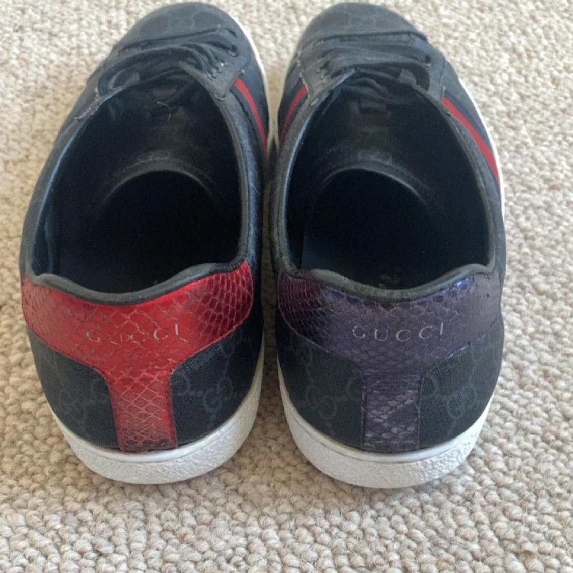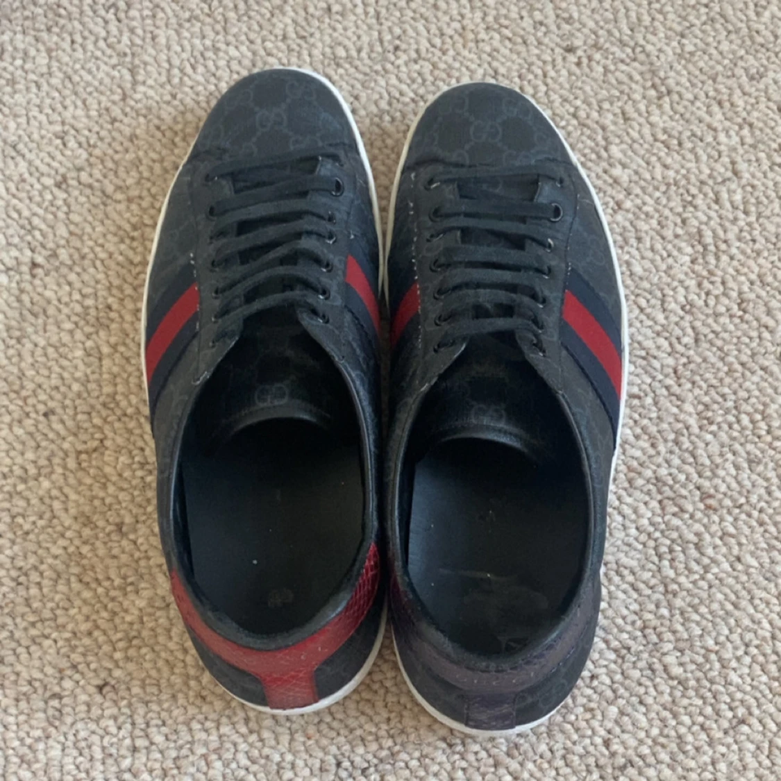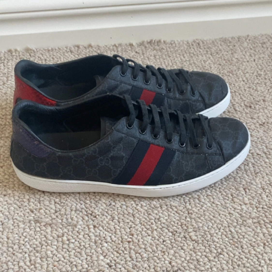 Säljer ett par otroligt snygga Gucci skor i modellen ace gg supreme. Skorna är i storlek 45. Nypris ligger på hela 9000kronor men vi säljer dom för endast 2499!!! Skorna har tecken på användning men är fortfarande i bra skick då SkoKapet tvättar dom, med whitening cream! Skriv gärna till oss ifall det är några funderingar, allt bästa Frank
