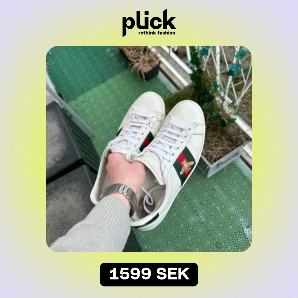 Säljer ett par riktigt feta Gucci ace skor i storlek 42. Fint skick förutom lite slitna inuti. Inget OG men skickas med en TOD’S dustbag. Authenticity checkade av Vestiaire Collective fysiska kontroll! Hör av er vid frågor eller funderingar 😁