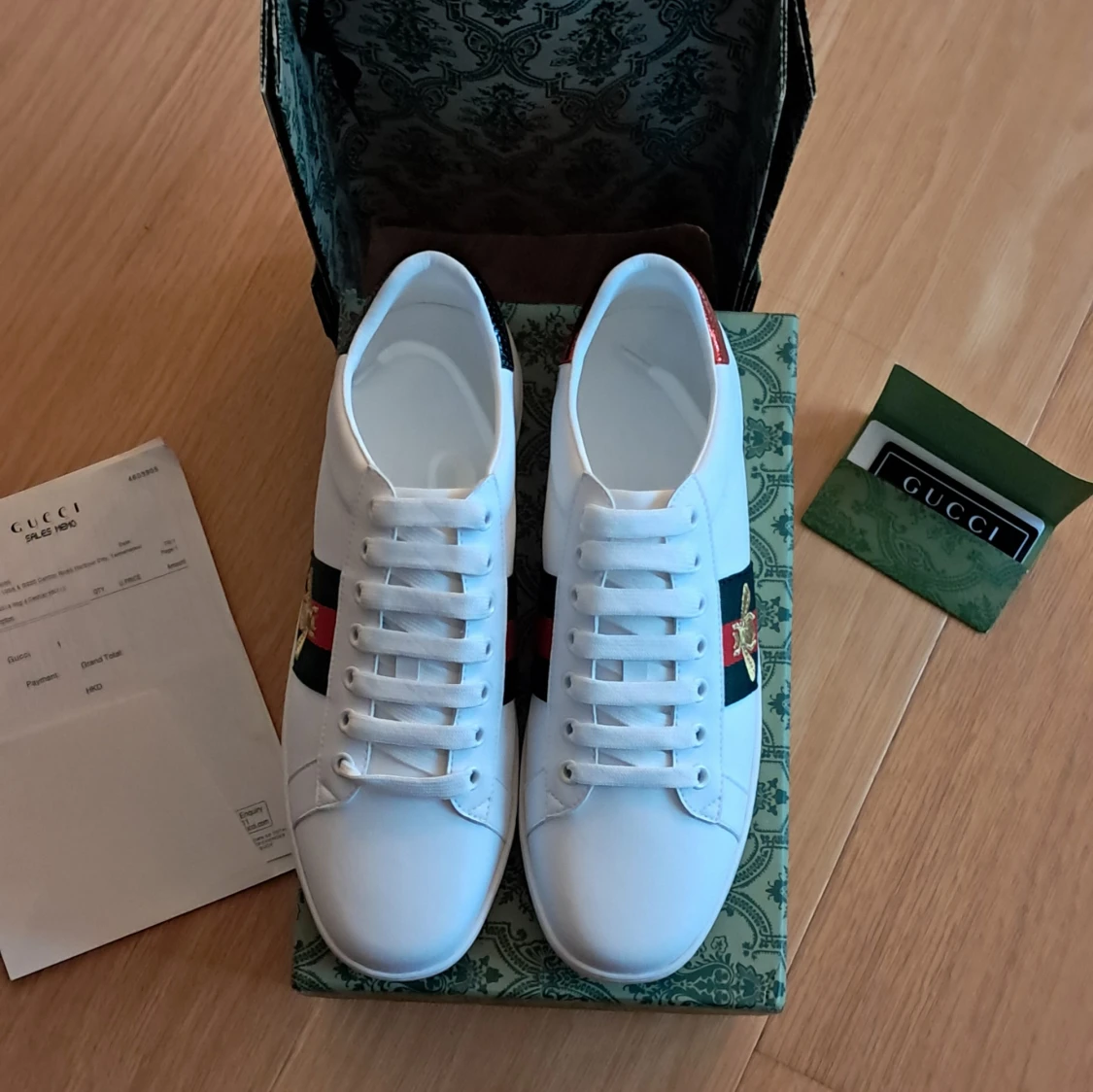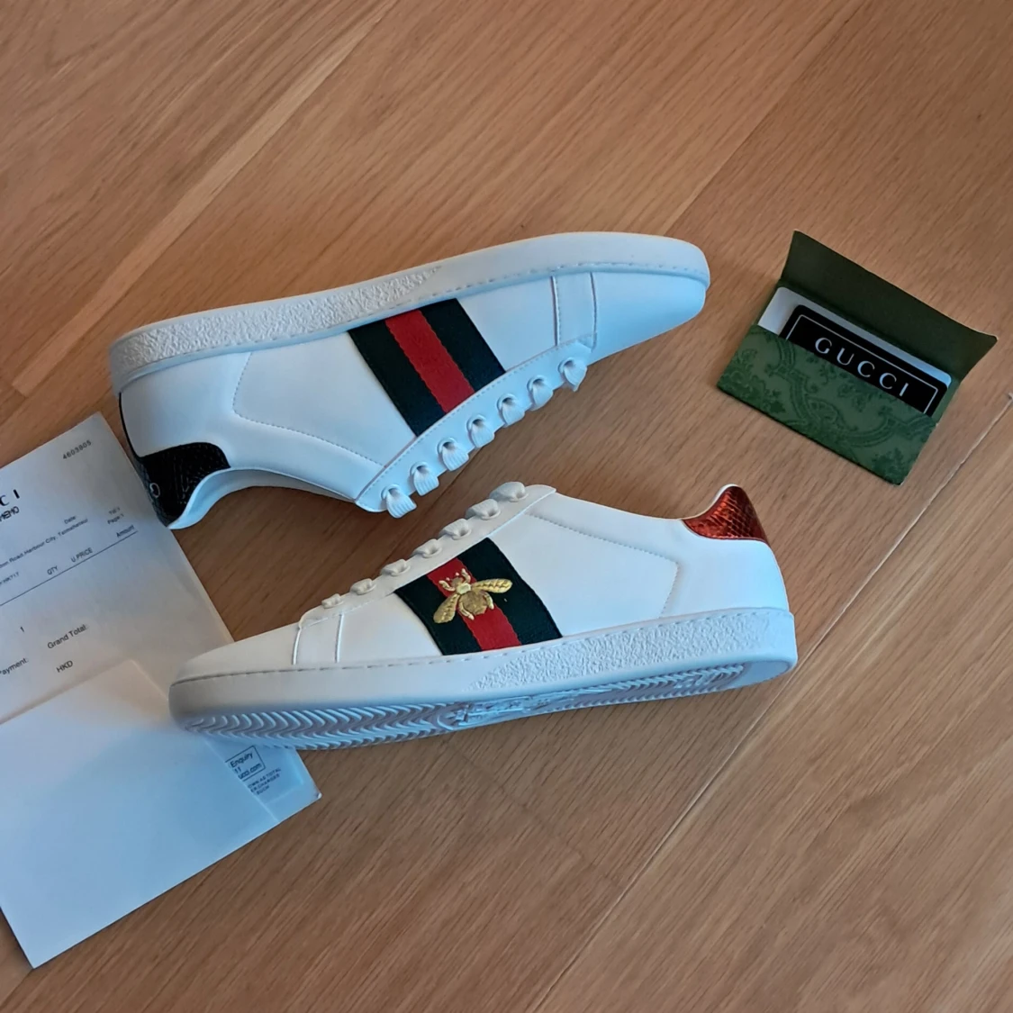 Sjukt snygga helt nya gucci ace skor med bee design! Allt på bild följer med🍾⭐️ Storlek 42. Kom gärna med frågor och pris kan diskuteras något🍂🔥