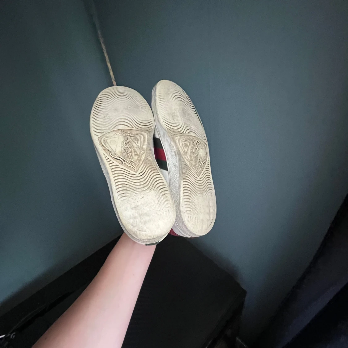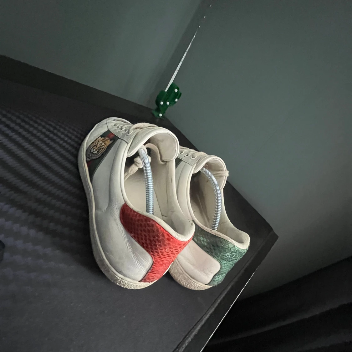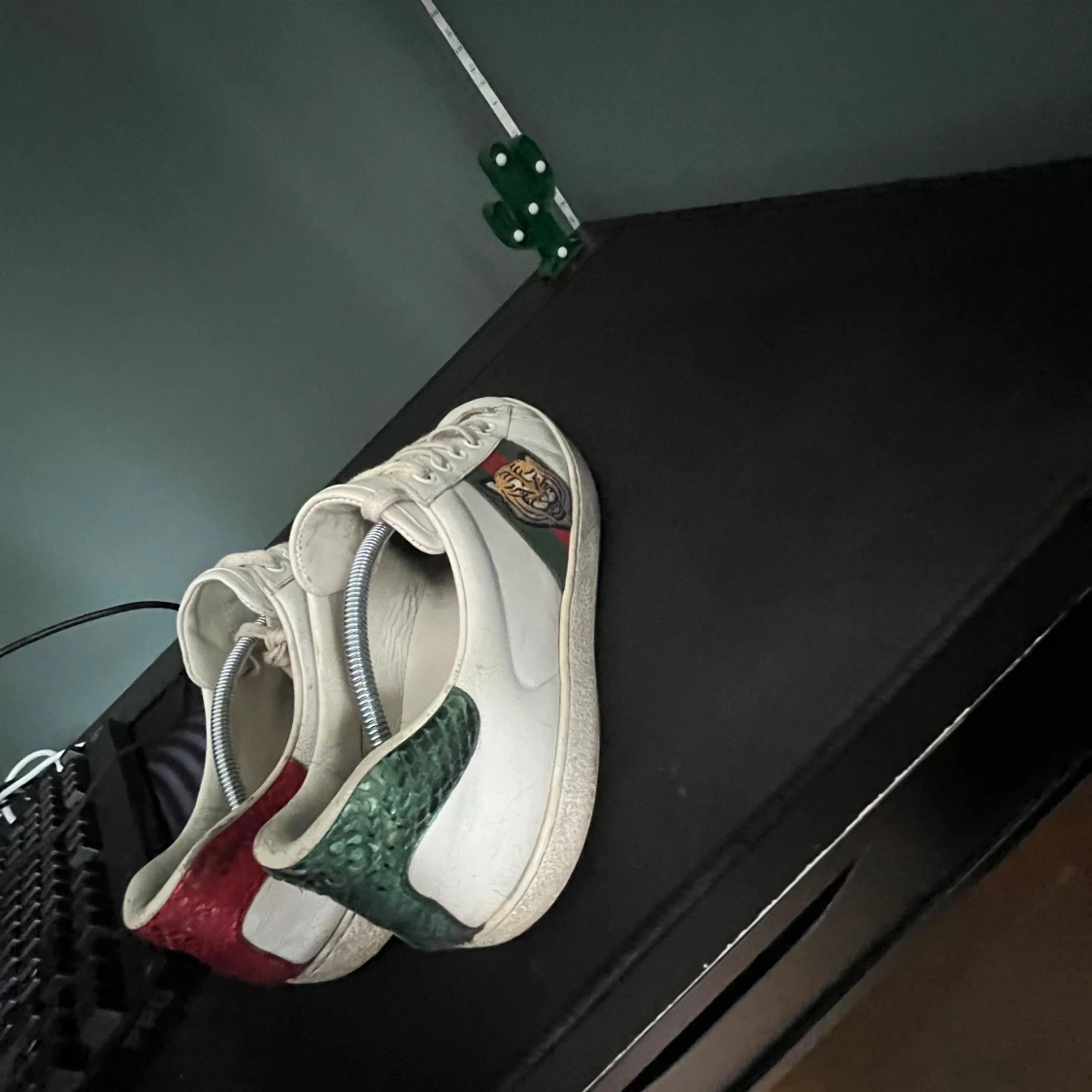 Säljer nu ett par riktigt snygga Gucci ace skor, perfekta skor till dig som vill ha några stilrena skor riktigt feta och passar till det mesta, defekter förekommer som syns på bilderna och man bedömer skicket själv efter bilderna! Inget og medföljer! skulle själv säga att dom är i hyfsat bra skick och mycket kvar att ge skriv vid minsta fundering💫