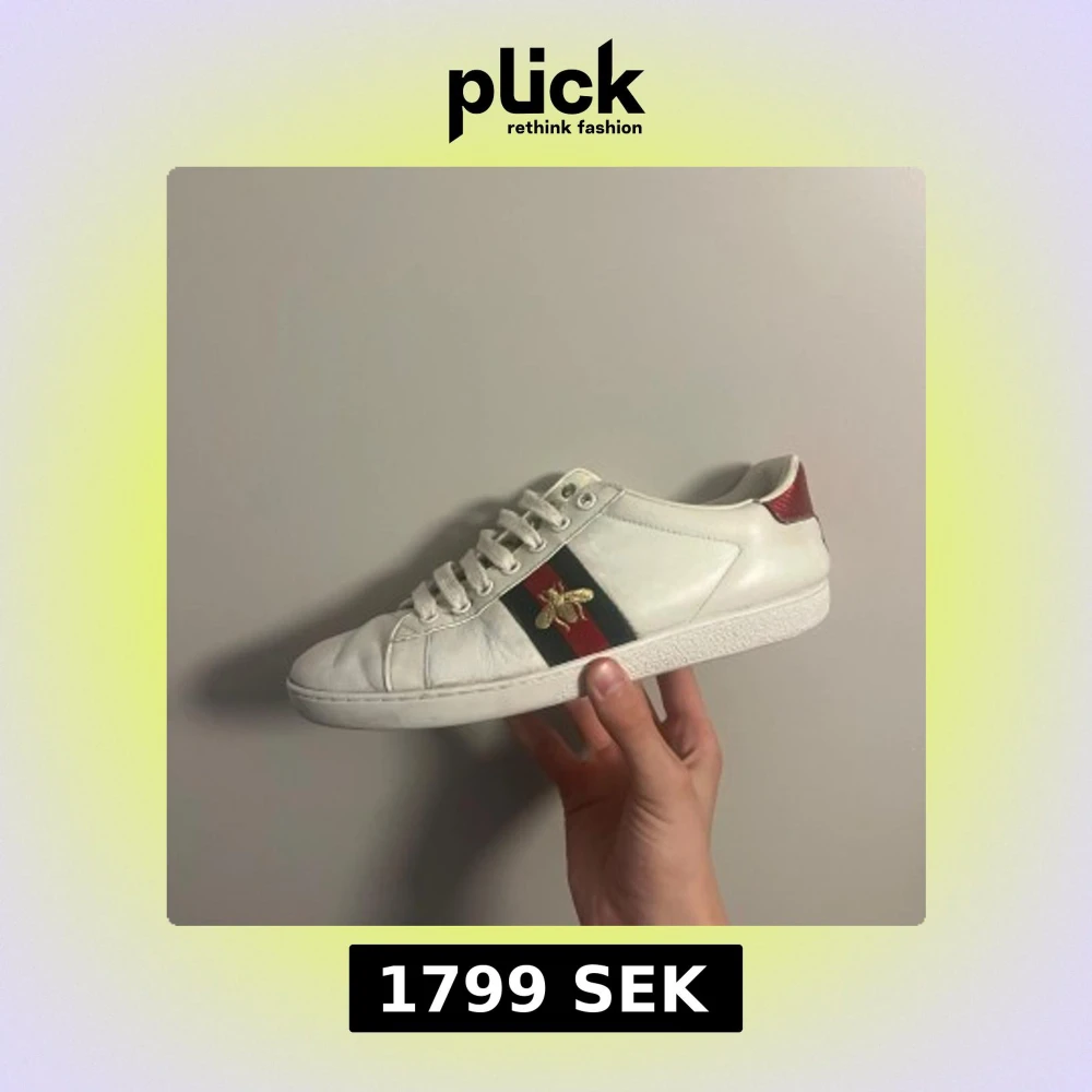 Gucci ace bee| Nypris: 9000 | Storlek: 41, innermåttet är ca 26cm |Skick: bra (slitage kan ses i bilderna) | Medföljer: skor och dustbag | extremt snygga och är eftertraktade nu till sommaren! Passar både fest och vardag! Hör av dig vid minsta lilla fråga🤩