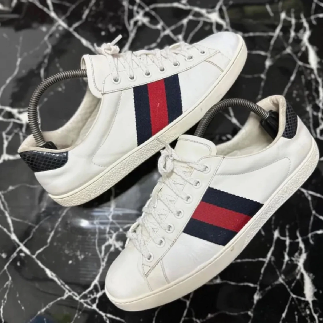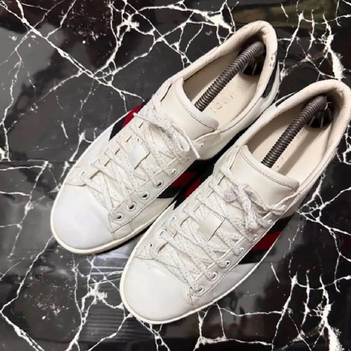 Ett par stilrena Gucci ace i storleken 43. Bra skick och sällsynt färg modell. Några funderingar är de ba att skicka på!