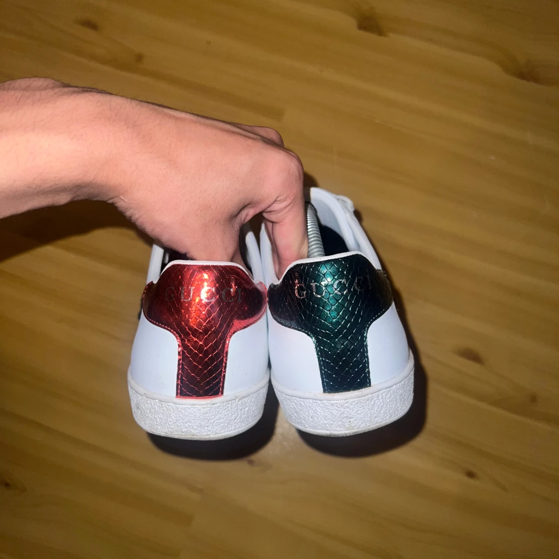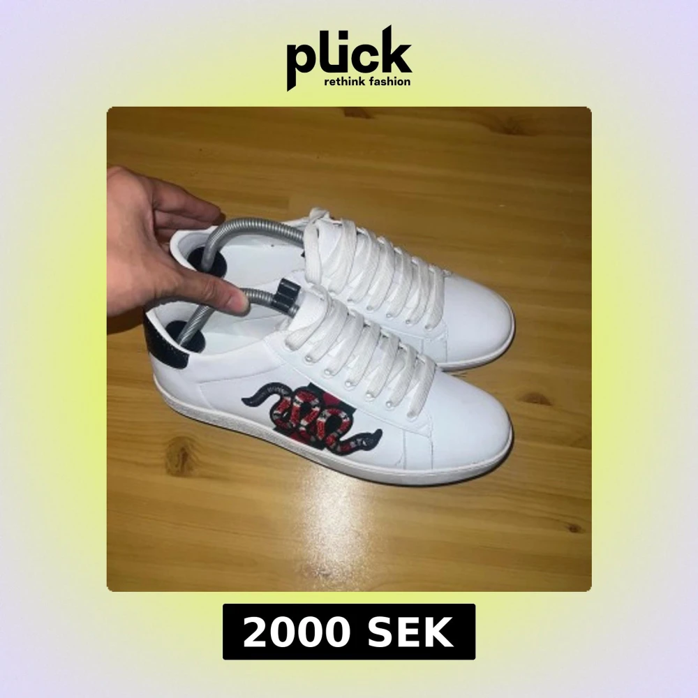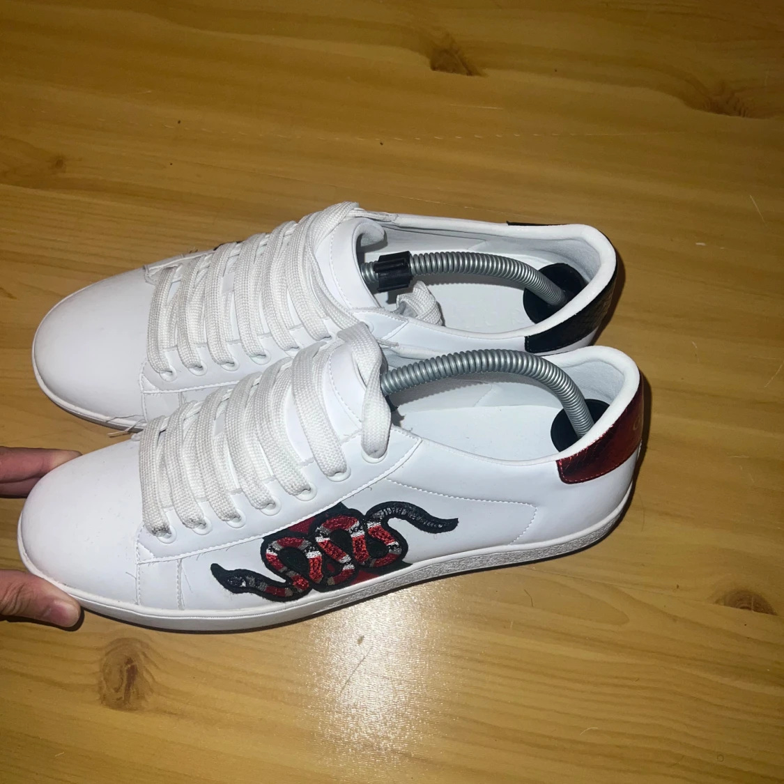 Säljer nu mina Gucci Ace skor i storlek 42 eftersom de inte kommer till användning. Skorna är använda endast ett fåtal gånger och blir som nya om man tvättar dem lite. Med skorna får man med skolådan och olika papper och tillbehör. Priset är ej hugget i sten så ställ gärna frågor och kom gärna med prisförslag😄