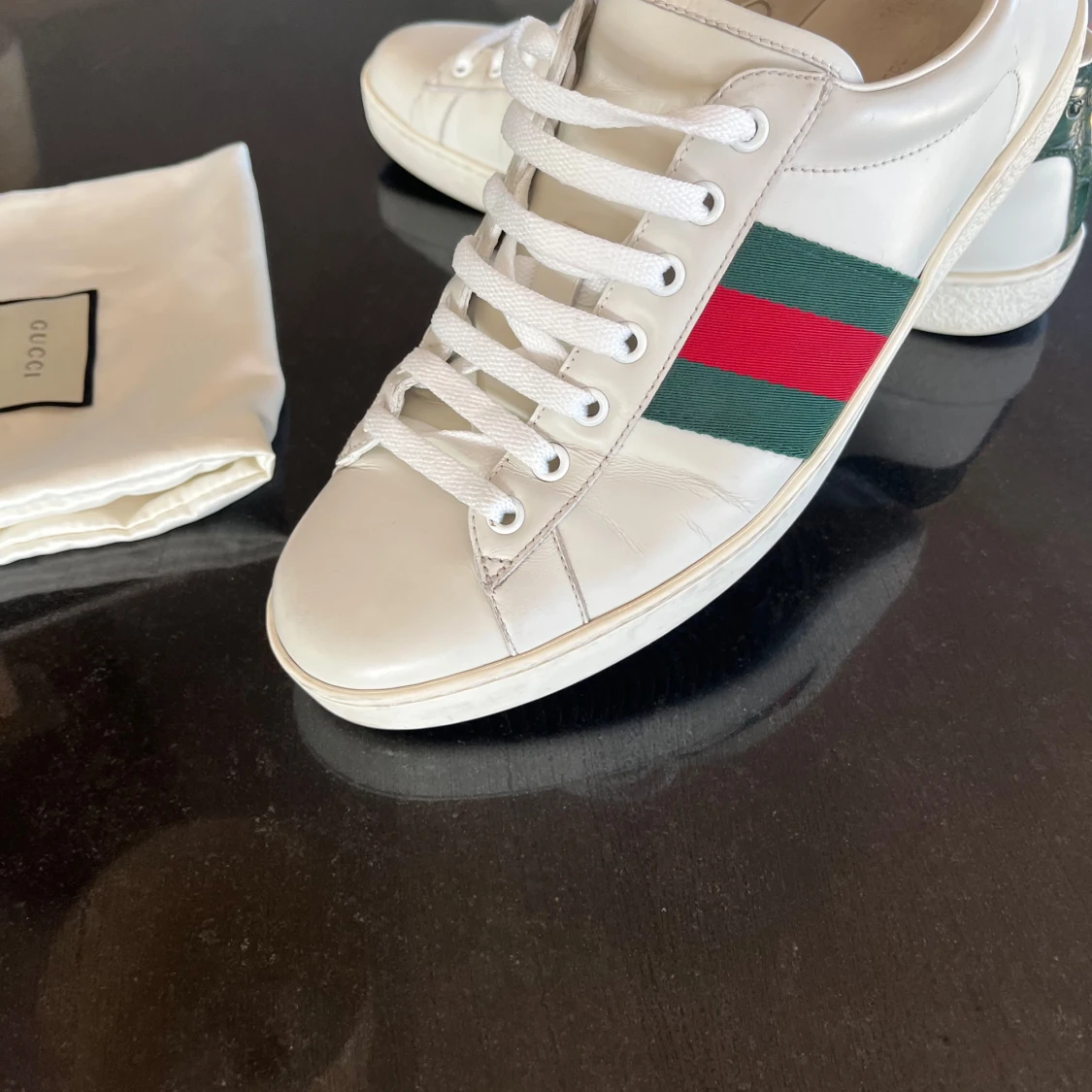 Gucci Ace skor || skick 9,5/10 || storlek EU 43,5-44 || tillbehör: en dustbag || ingen defekt eller slitage, nästan nyskick, helt nya snören || hör av er vid frågor 🙌