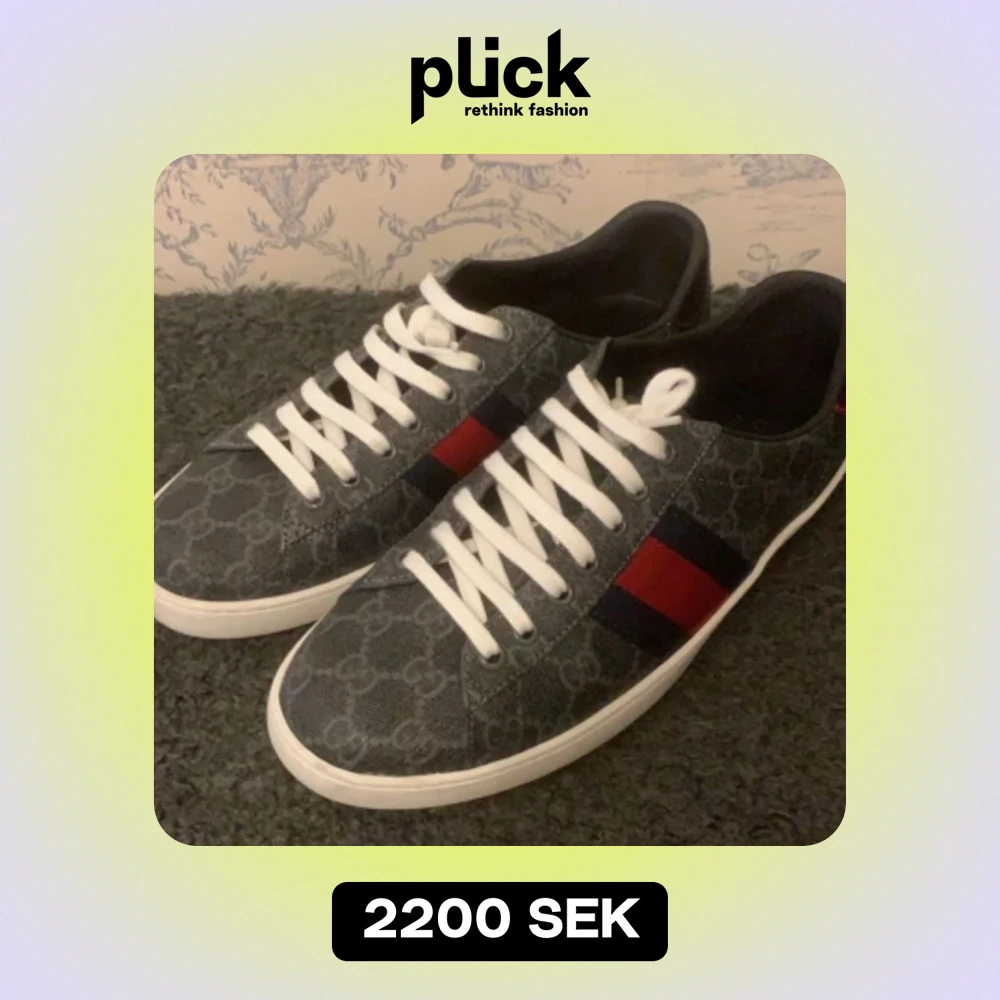 Säljer ett par Gucci Ace sneakers i storlek 43, nästan oanvända och i nyskick. Klassisk vit design med de ikoniska marinblå och röda ränderna. Perfekt för dig som vill ha lyxiga och tidlösa sneakers! Obs inget og