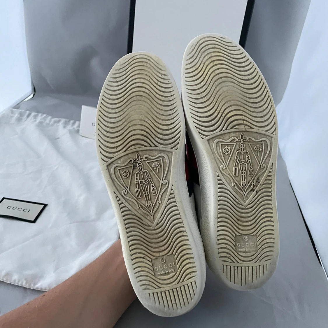 Säljer nu dessa feta Gucci ace skor i uk 7 som passar 41, i og ingår både dustbag och även Gucci papper men ej box som är för bildens skull endast, skriv för fler bilder/frågor🙌🏼