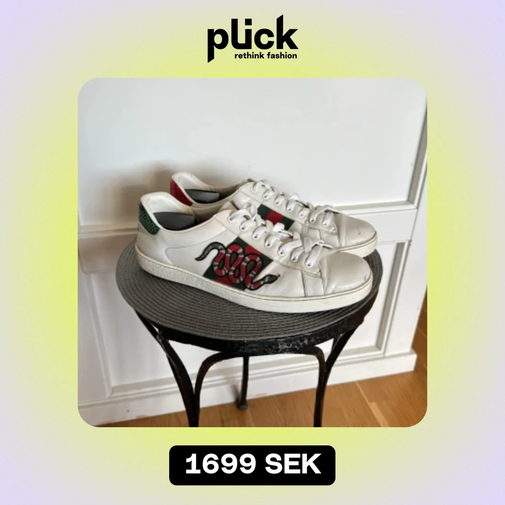Gucci Ace Snake skor✅Använda en del, skick 7/10✅UK 10, motsvarar 44✅ Pris: 1699, endast skor ingår därav priset✅ Tveka inte för att skriva om ni har några funderingar!✅