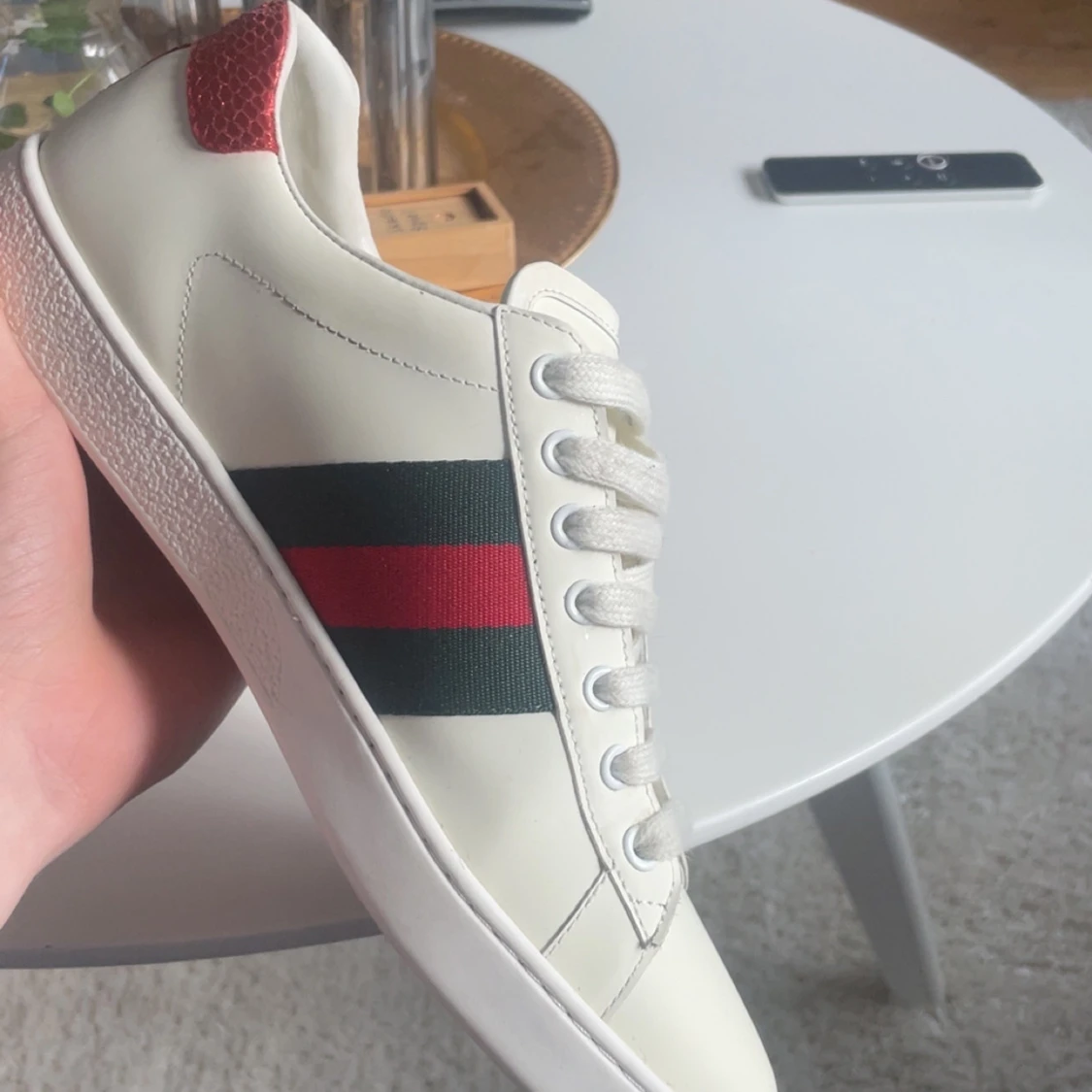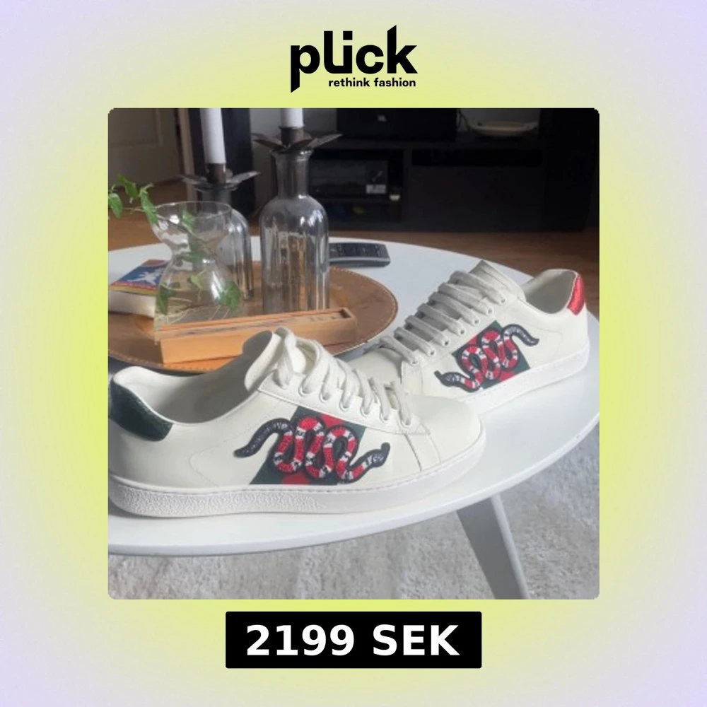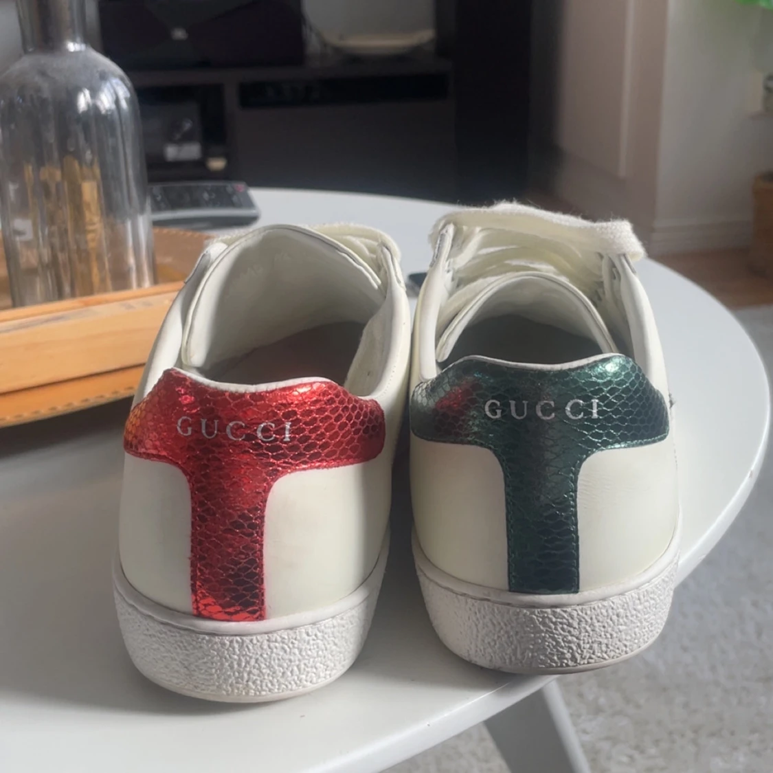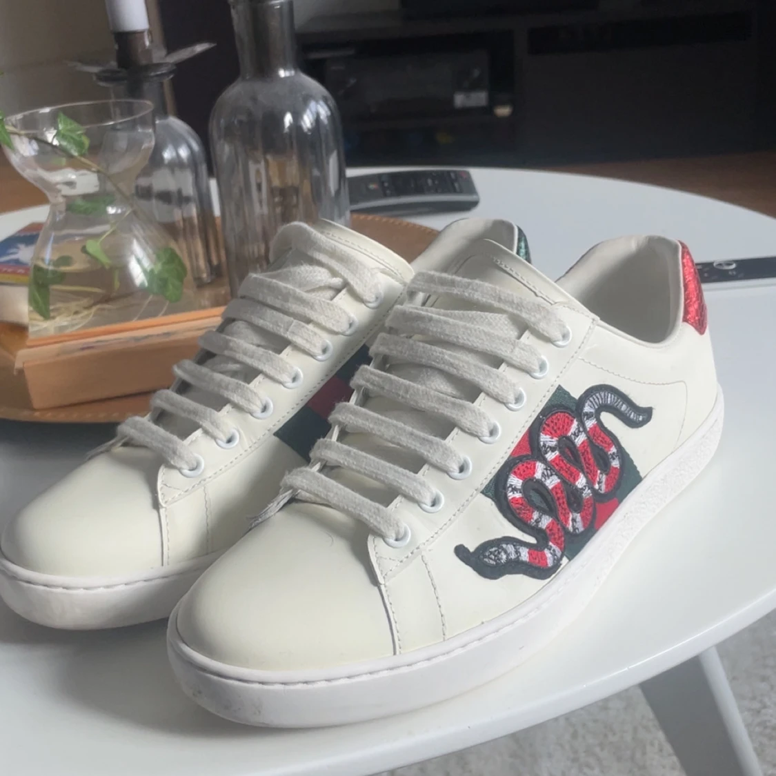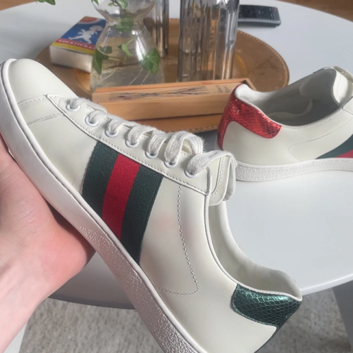 Säljer nu mina Gucci ace eftersom dom är för små, dom är storlek 42-43. Väldigt fint skick, box och kort medföljer. Kontakta mig vid minsta fundering😁
