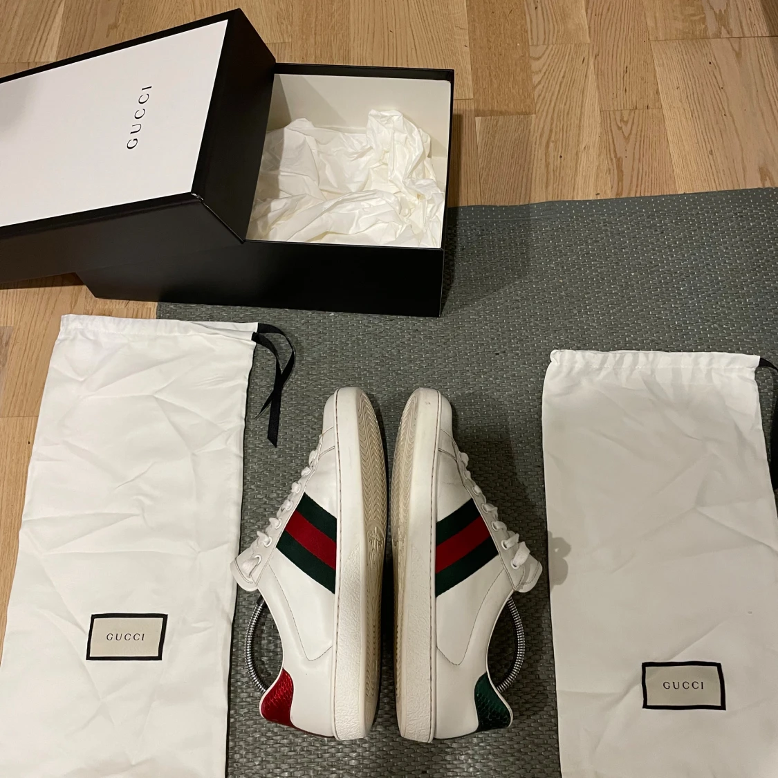 Snygga skor från Gucci. (ÄKTA) De är i nyskick, och har inga defekter. De passar från 42-43. 🚨| Box ingår och separata dustbags till varsin sko ingår. Nypris-5499 kr | Mitt pris - 2999 kr. . Vill gärna få dessa skor sålda snabbt så pris kan diskuteras vid snabb affär. Hör av er om minsta fundering eller fråga om fler bilder. Tack.