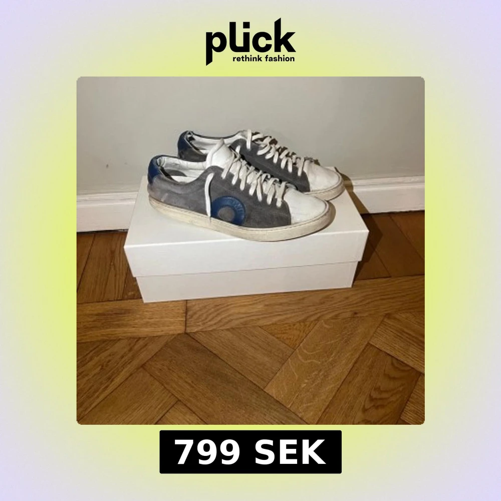Säljer ett par grå sneakers från Oliver Cabell i modellen Low 1. Skorna har en stilren design med blå detaljer. Skick 6/10 två defekter som syns på sista bilden ! Annars är dom i 8/10. Hålet i sulan märks ingenting när du har på dig skorna !! Står ej för PostNords eller instabox strul. Hör av dig vid minsta fundering och kan absolut gå ner i pris vid snabb affär!