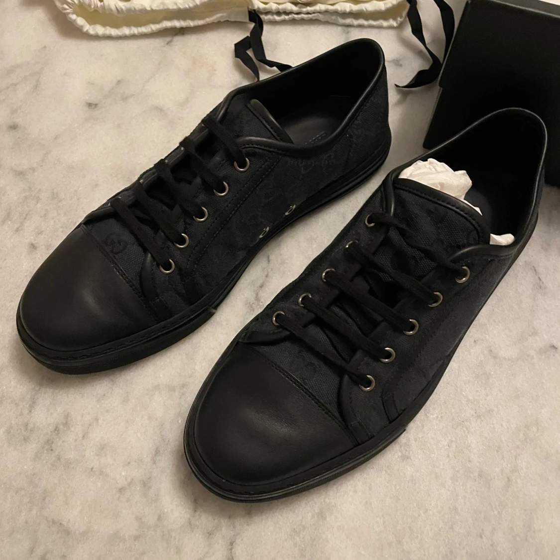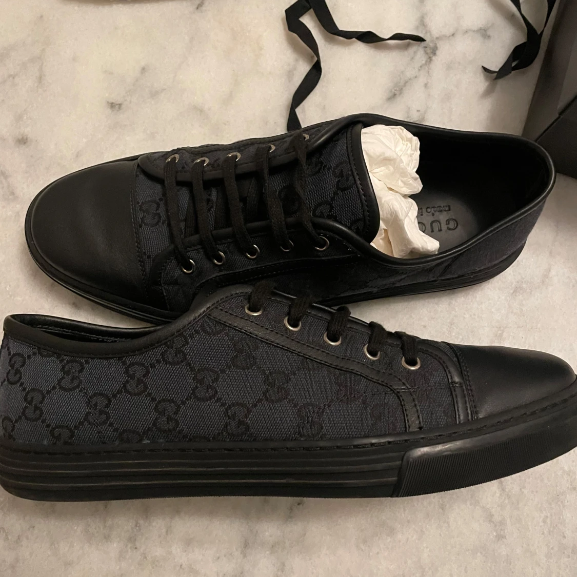 Säljer nu mina Gucci GG Monogram Black i stl 43 som är perfekta skor nu in för sommaren. Skick 7,5-10. Retail 9-11.000kr mitt pris 1.799kr. Byten kan vara intressant, i skor Stl 43 och kläder M-L.
