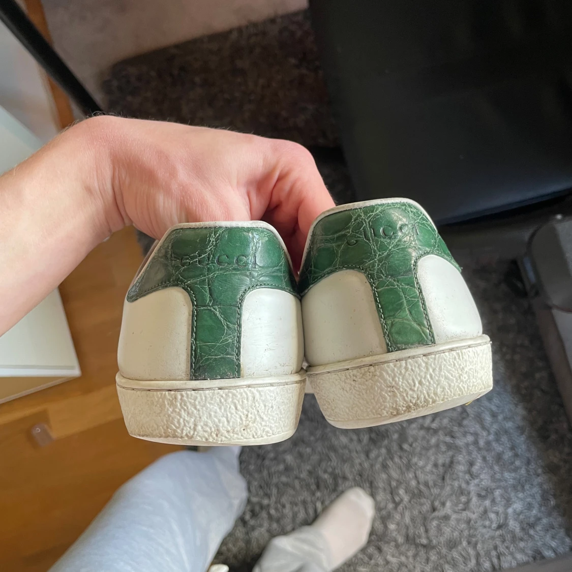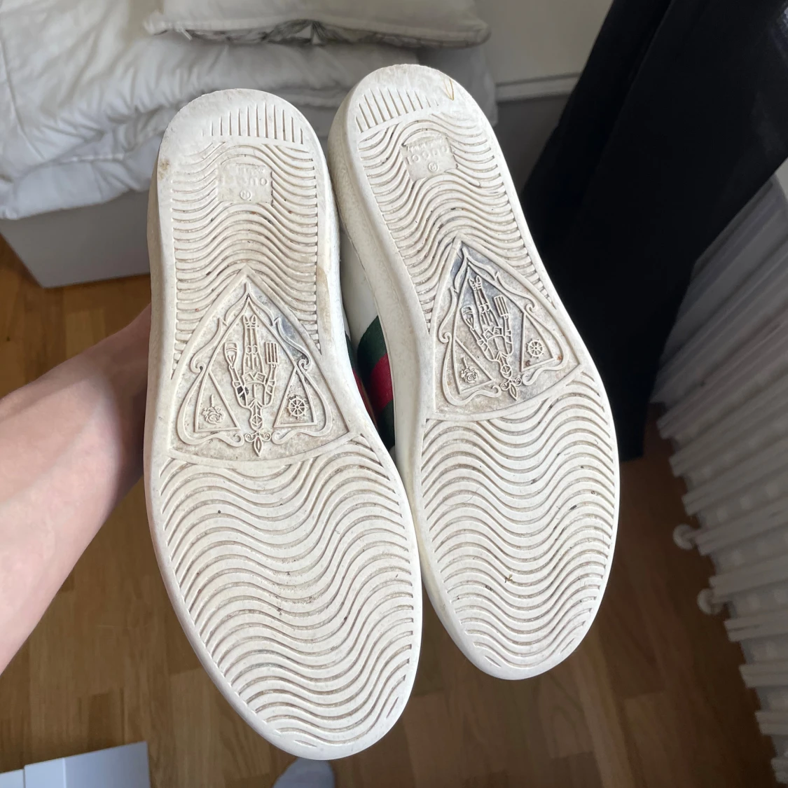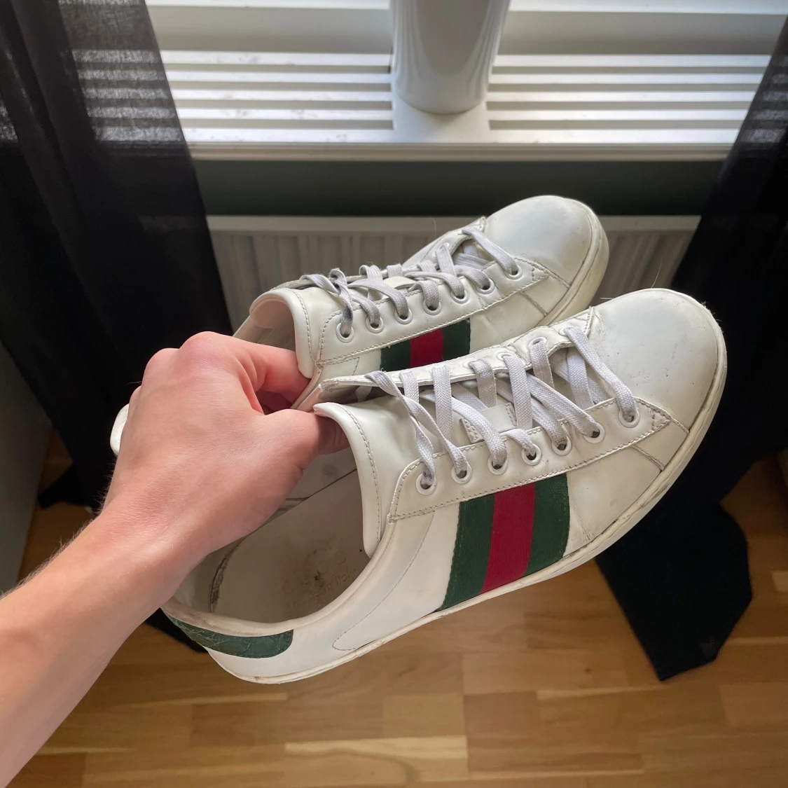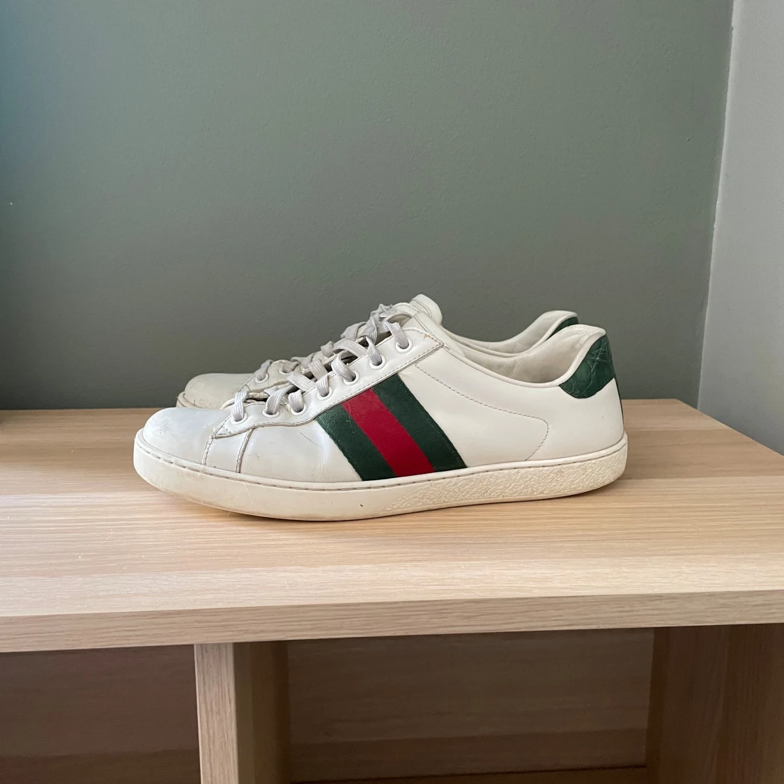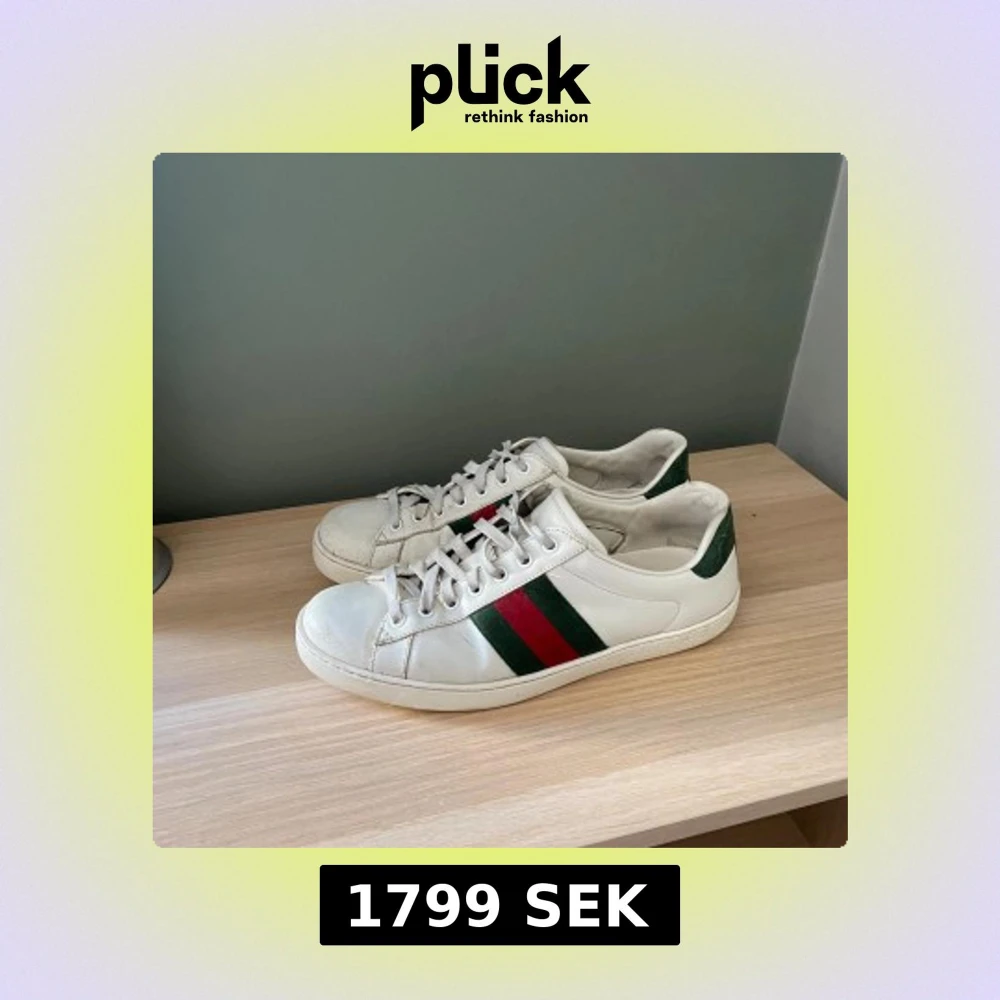 Säljer nu dessa tvärfeta och eftertraktade Gucci Ace skorna! 🙌 Storleken är 41 men skulle även kunna passa 42! 🤩| Nypris = 9000kr, Mitt pris = 1799! 🙌 De är i bra skick och med lite rengöring så kommer de nästan se nya ut! Hör av er vid minsta fråga eller fundering! 🤝
