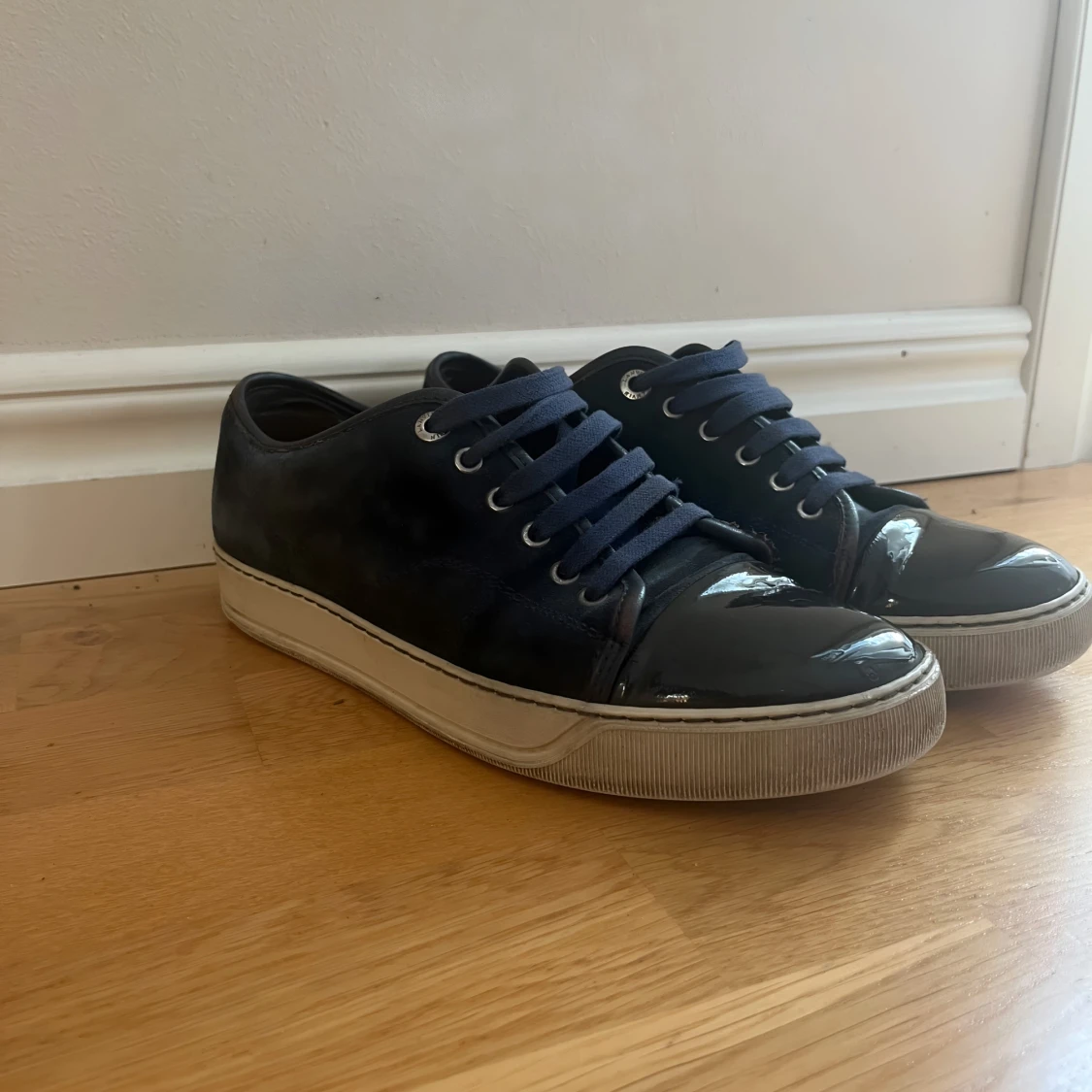 Tja, säljer dessa feta lanvins Cap Toe. De är en färgen royal blue, som ej säljs längre. Det är en eftertraktad färg och dessa skor är i bra skick. Dessa skor har storlek Uk5 men då Lanvins är kända för stora i storleken så passar dessa 40-42. Mitt pris 2599 kr. Jag är villig att göra deals. Skador: Innerhälen, sulan,captoe. Hela skon är lite hålig+ sliten. Fråga om ni vill ha bild på skador. Min bedömning är skick 8,5/10. Hör gärna av er vid utliggare frågor!