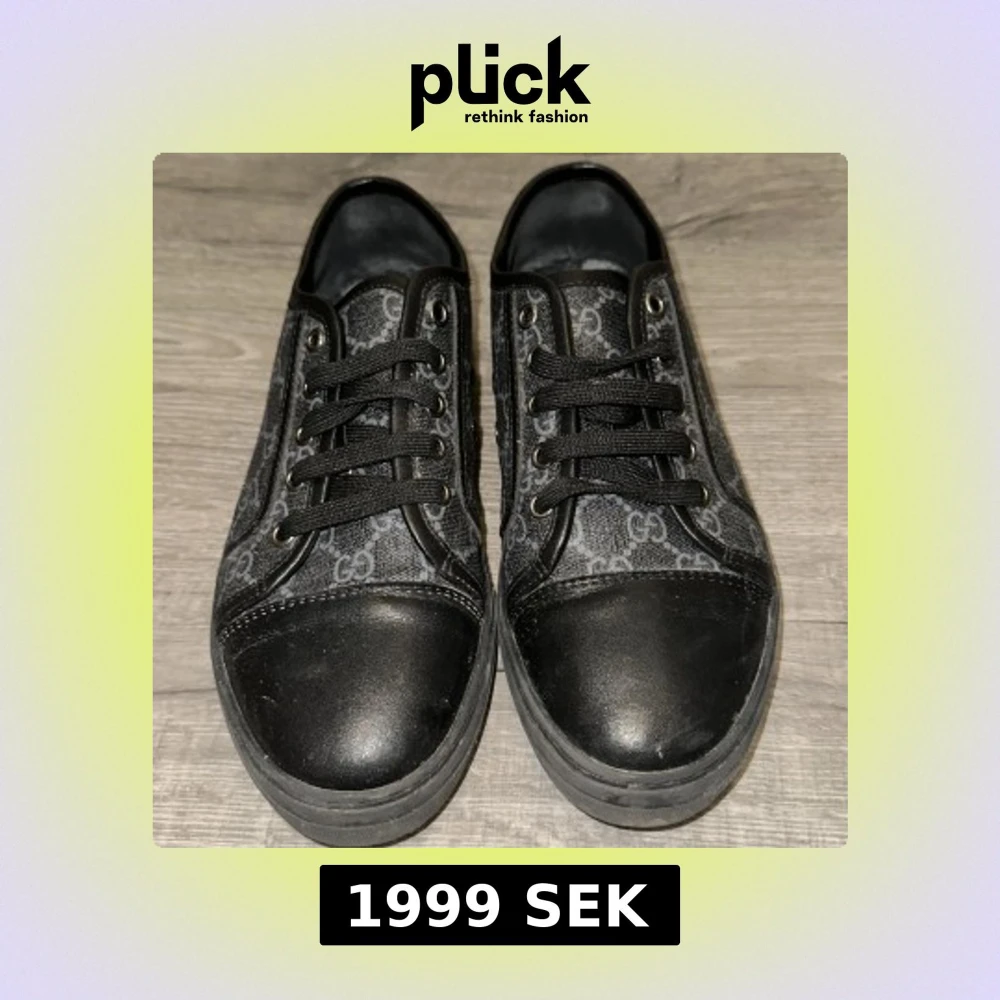 Pris ej hugget i sten đȘš.Snygga svarta sneakers frĂ„n Gucci med klassiskt GG-mönster i grĂ„tt. Skorna har svarta skinnpartier vid tĂ„ och hĂ€l, svarta snören och detaljer i metall. Yttersulan Ă€r i svart gummi med Gucci-logga undertill. Perfekta för dig som vill ha en lyxig och stilren look.