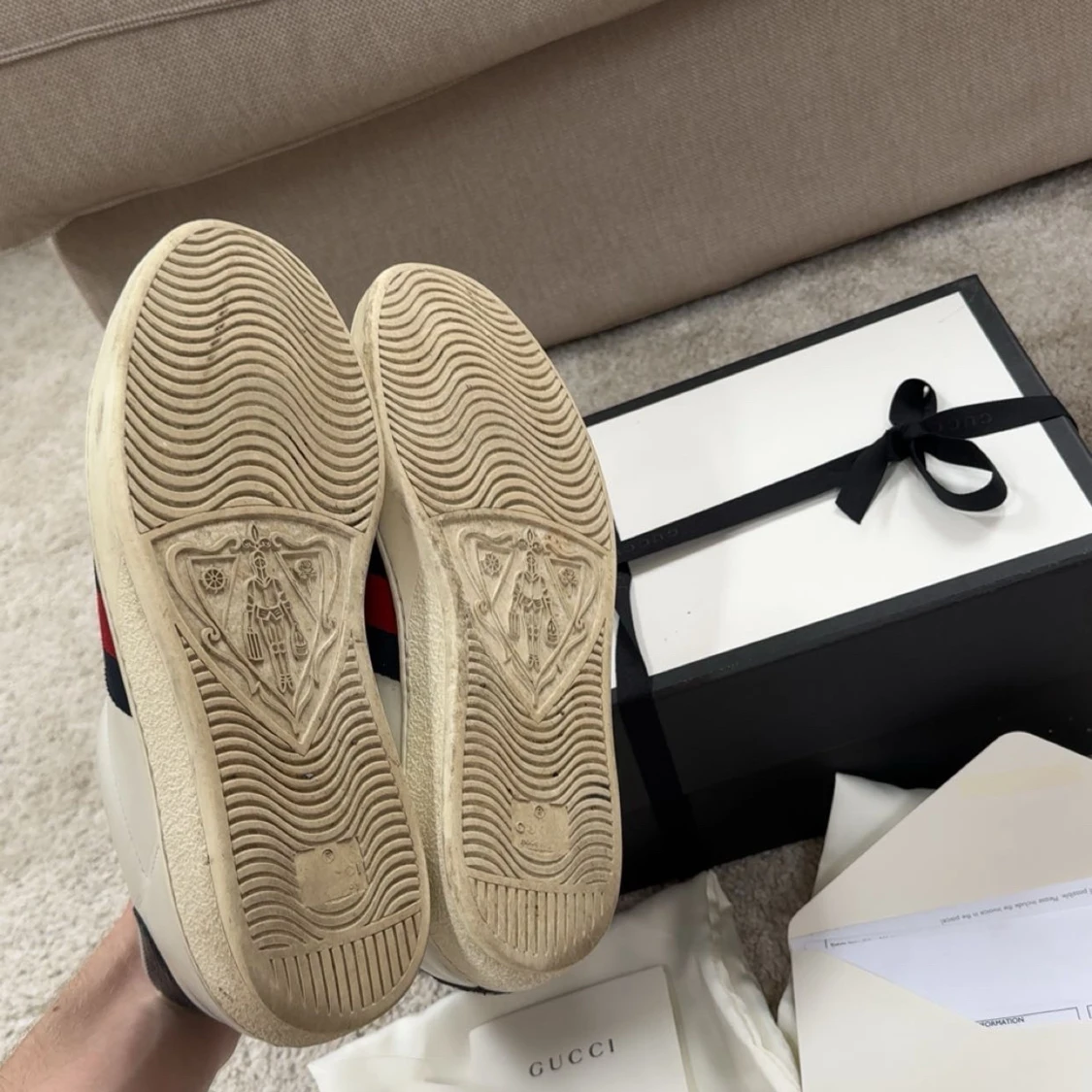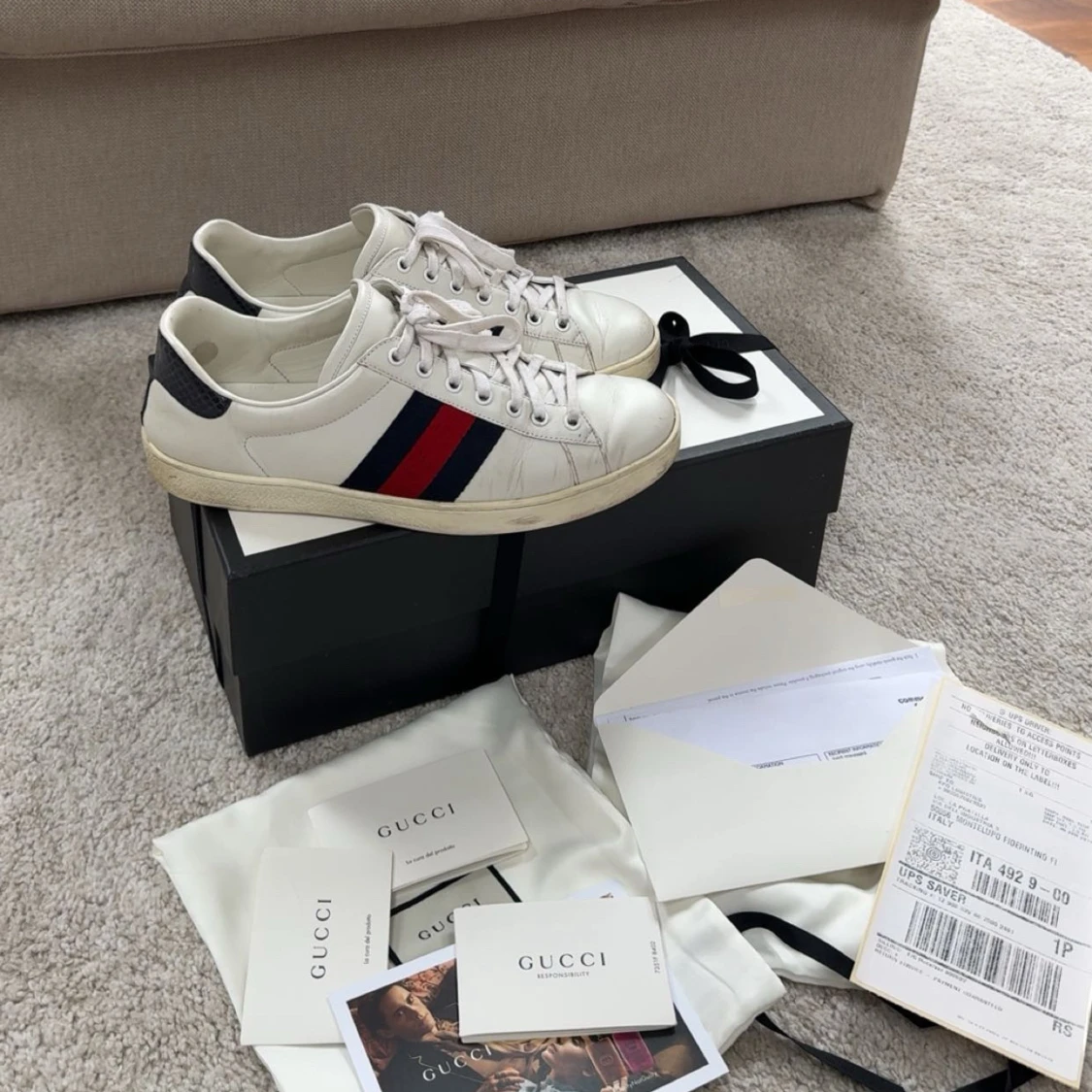 Gucci ace skor. Medföljer allt inklusive kvitto. Skick 6-7/10. Storlek 8.