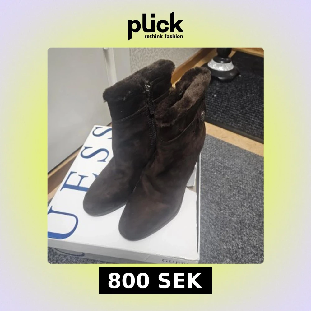 Snygga bruna boots från Guess med kilklack och mjukt foder. Skorna har en dragkedja på sidan och en dekorativ knappdetalj. Perfekta för kyligare dagar.
