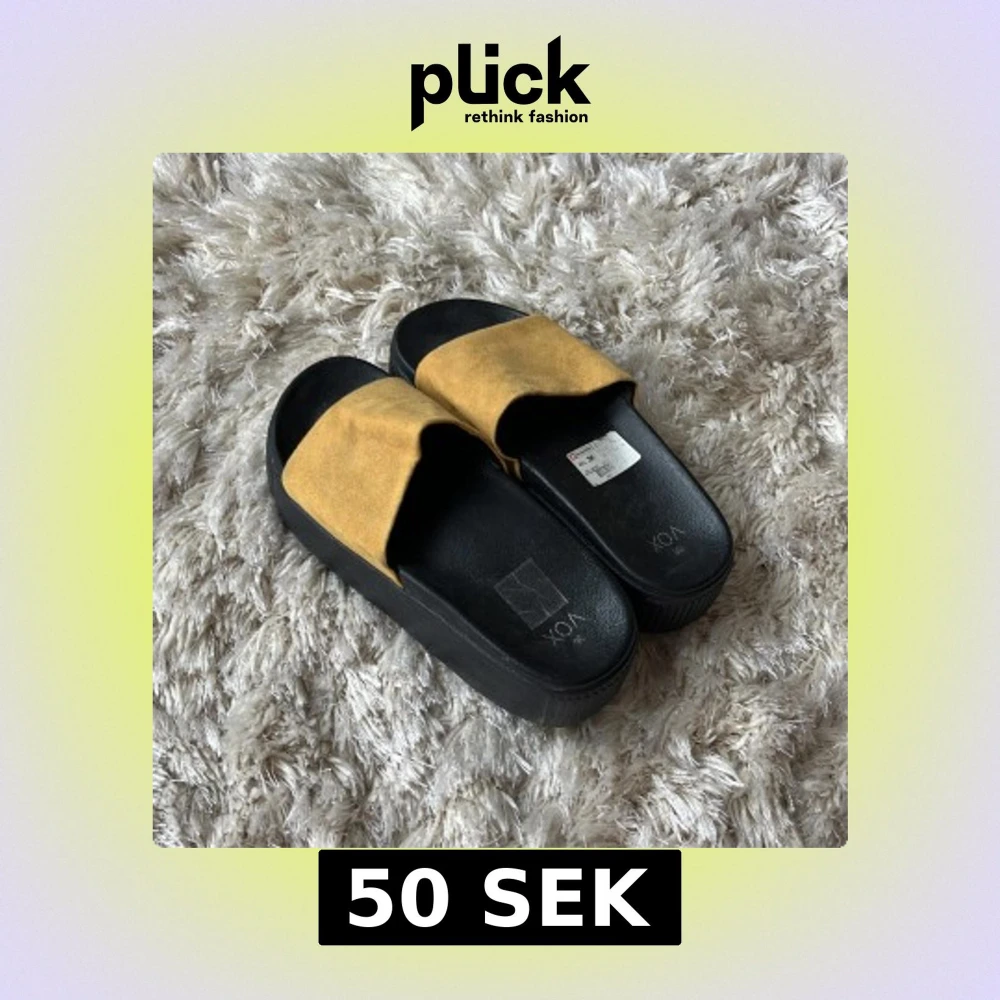 Chunky sandaler från VOX med bred gul mockarem över foten och svart platåsula. I strl 36 och använda max 2 gånger!