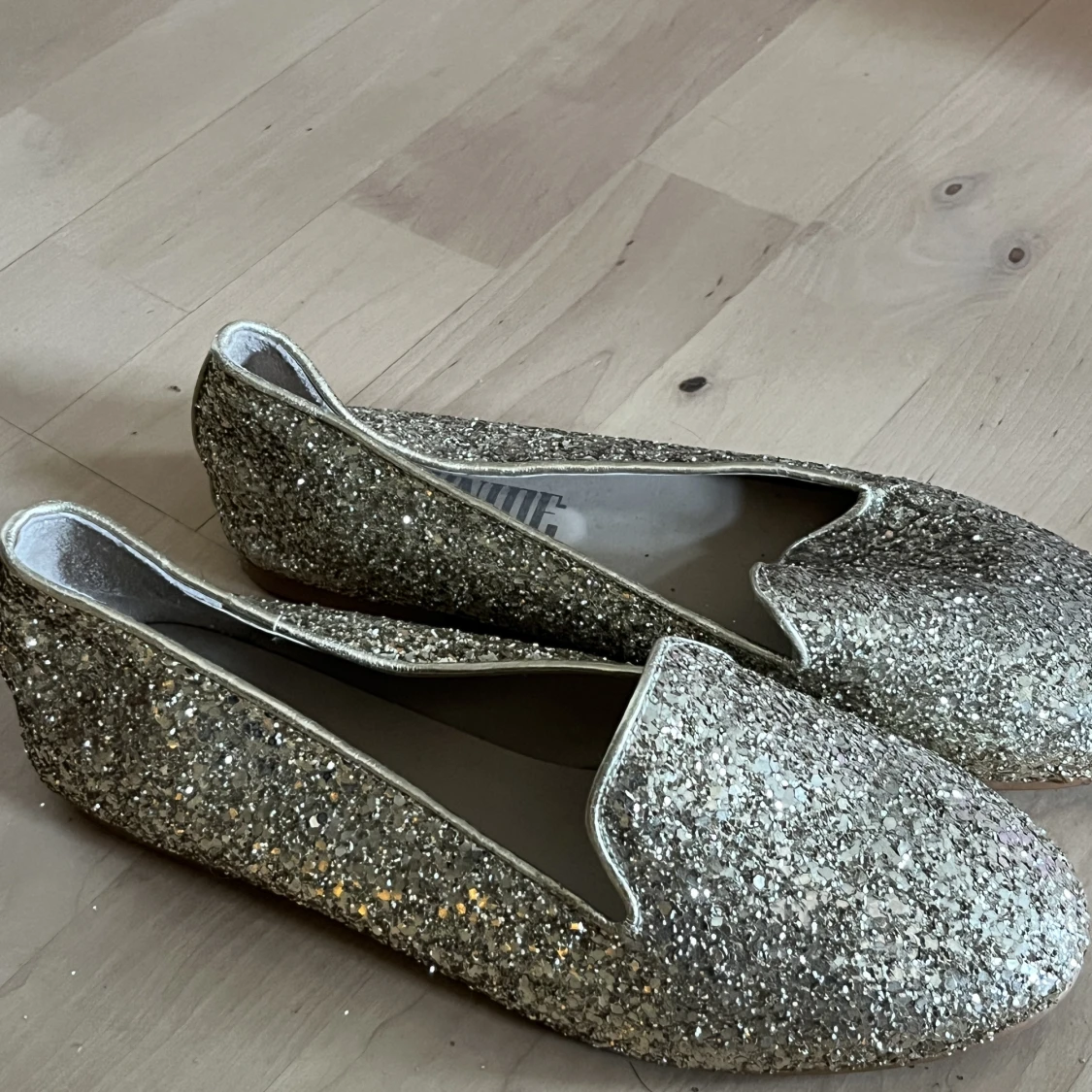 Guldglittrande flats. Storlek 37. aldrig använda.