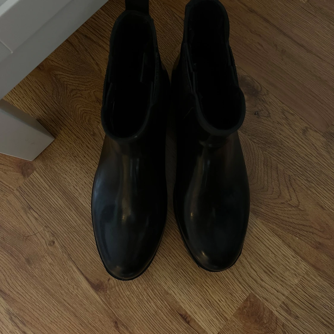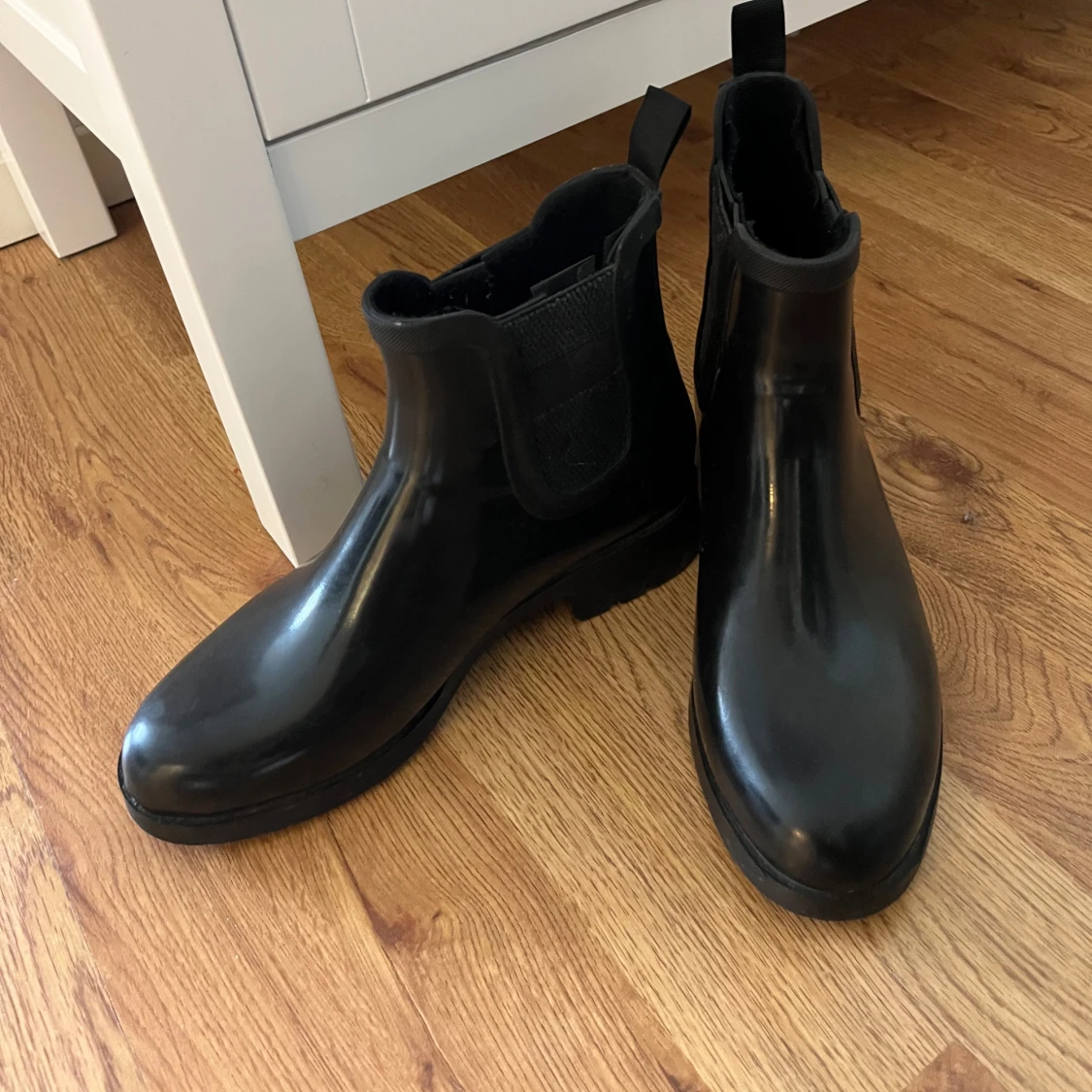 Stilrena svarta gummistövlar från GANT, ”Rubbersy rubber boot”, i storlek 36, Perfekt för regniga dagar eller en promenad i stan. Stilrena och bekväma. Skorna är i mycket fint skick då knappt använda.