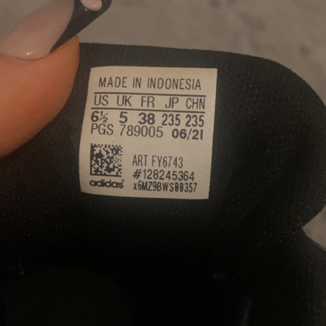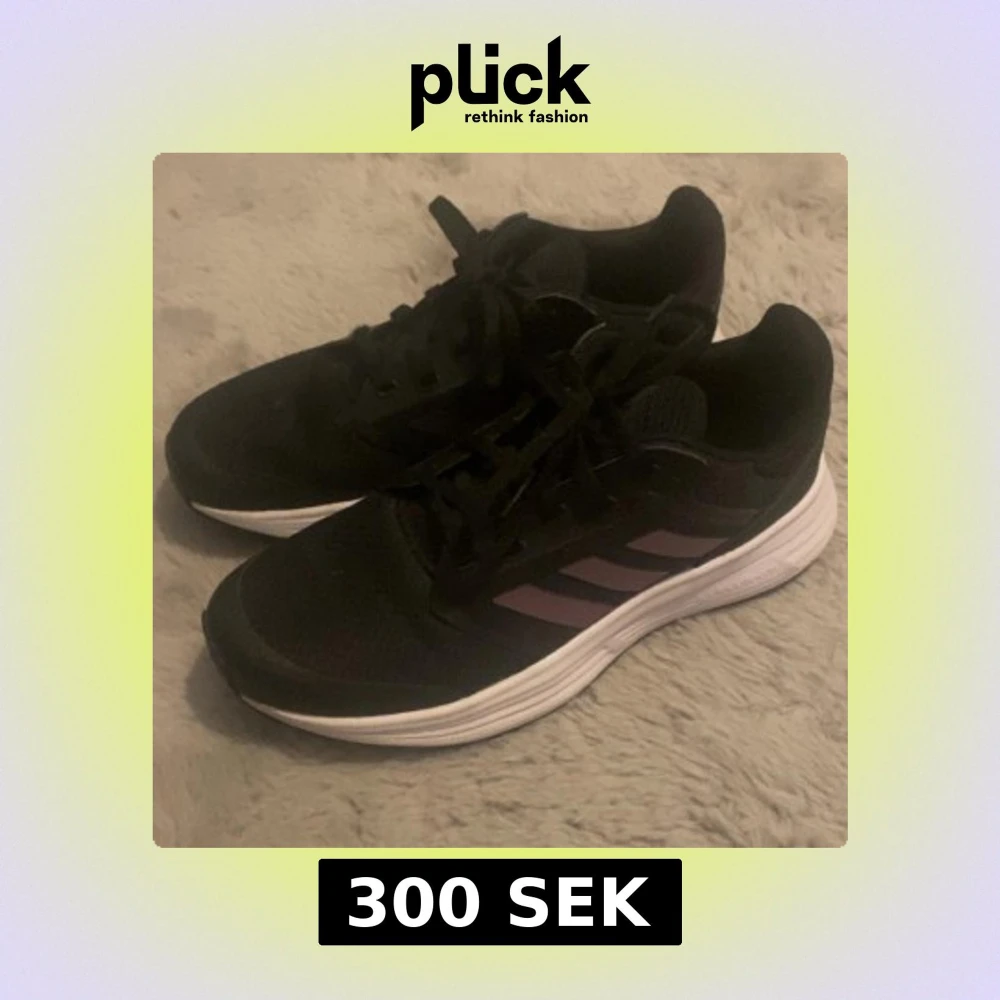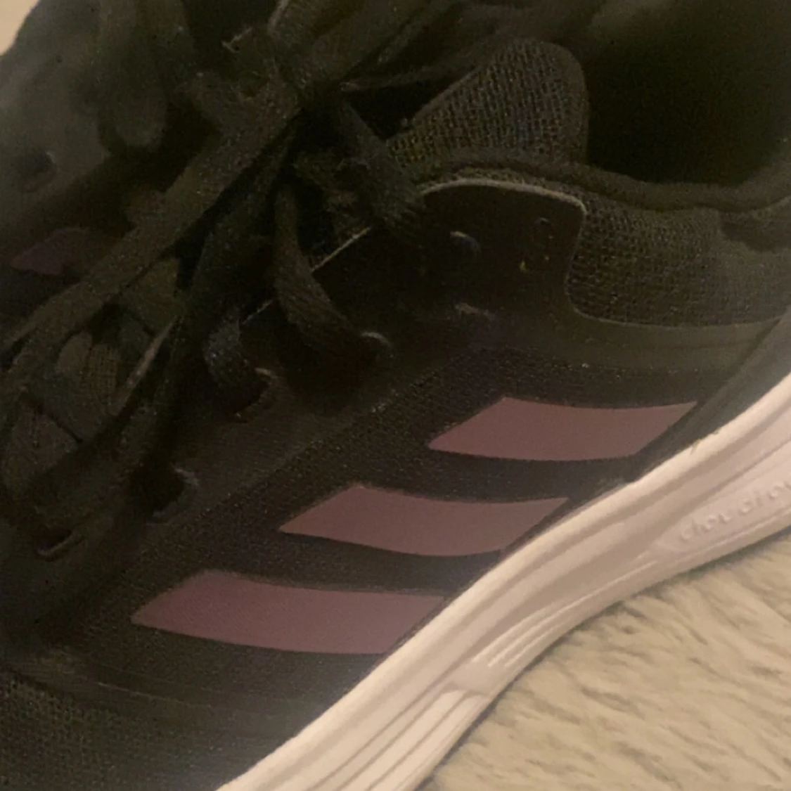Träningsskor från adidas, svarta med lila märke, Har använd 1 gång. Storlek 38