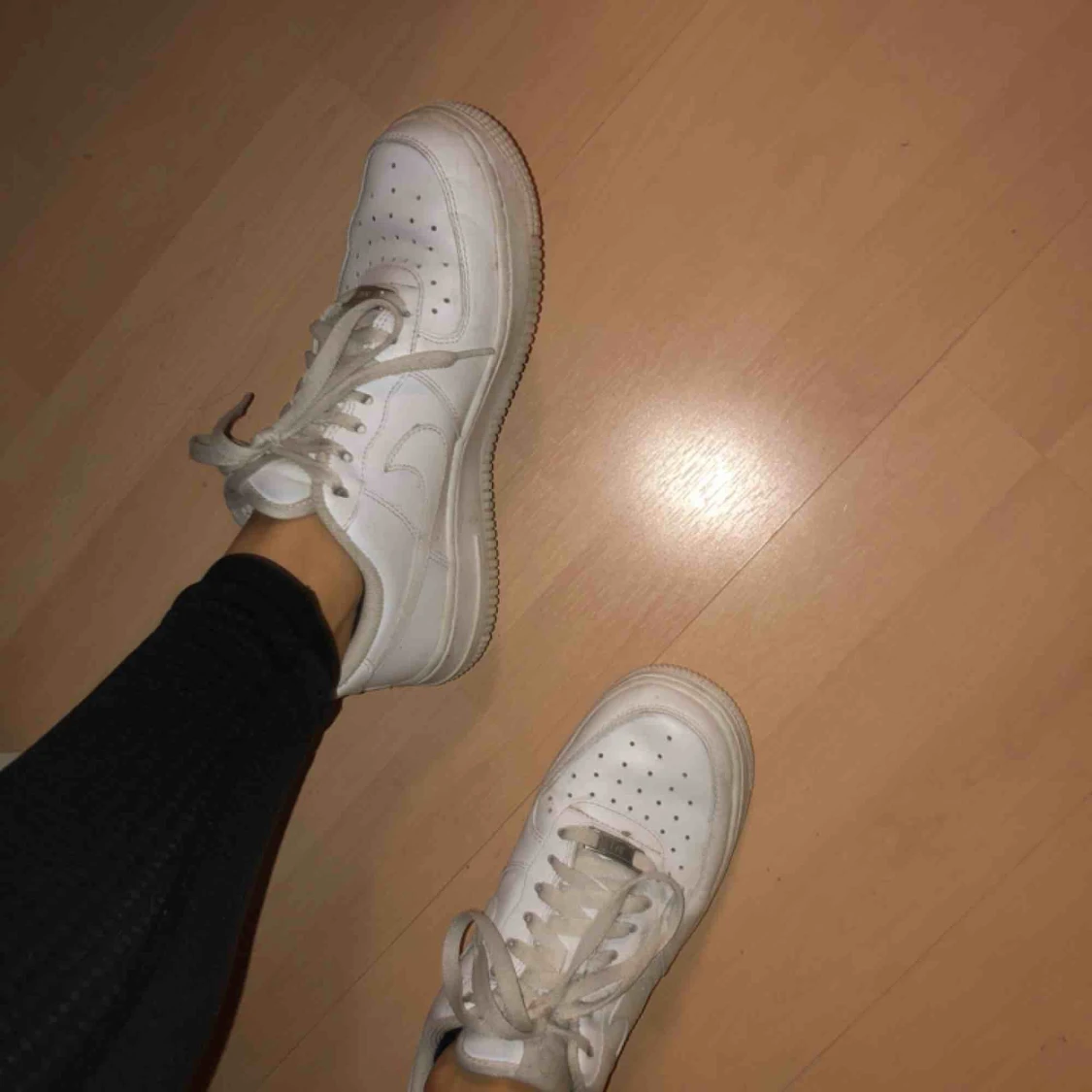 Säljer mina Nike air force skor som inte kommer till användning längre. Bra skick men ena skon låter lite när man går i dom.