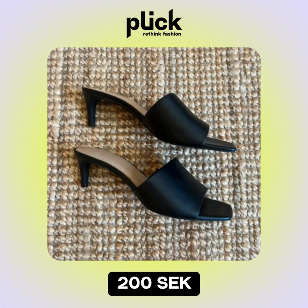 Helt nya, enbart ett pyttelitet märke där framme på högra skon som ni ser på bilden. Har inget exakt mått men tror klacken är max 3 cm hög 🖤