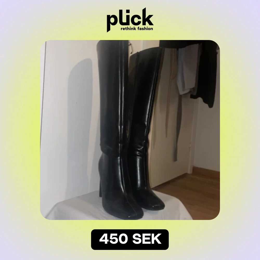 De här stövlarna har en knähög design. De har en dragkedja i sidan och fyrkantiga högklackade skor. De här stövlarna har en lyxig känsla. - har använt bara en gång helt nya/ köpte de för 600kr och säljer den för 450kr:)