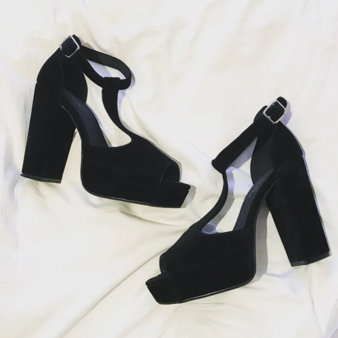 Platåsandaler i syntetmocka från H&M Divided. Endast använda vid ett tillfälle inomhus - som nya! Storlek 39.