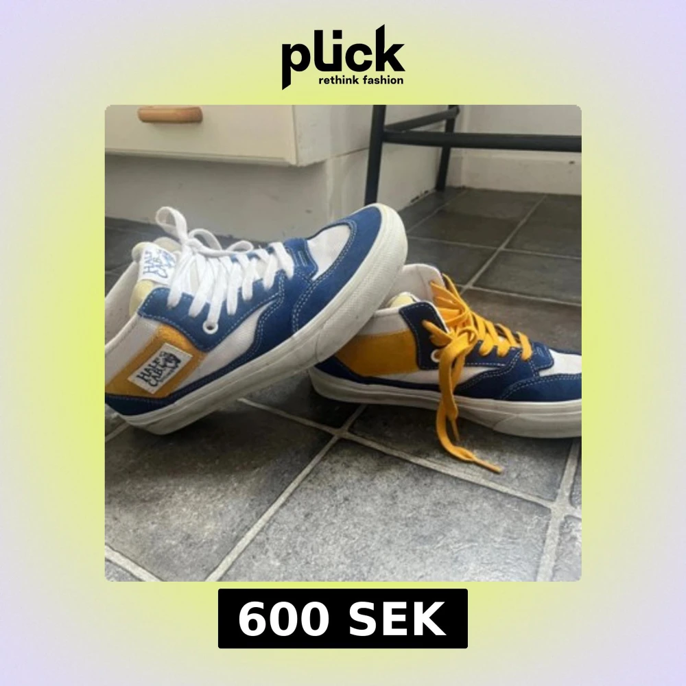 Snygga sneakers från Half Cab i en fräsch kombination av blått, gult och vitt. Skorna har en klassisk design med snörning och en bekväm sula. Perfekta för en avslappnad stil. Storleken är 38 och är relativt icke använda, ställ gärna frågor!