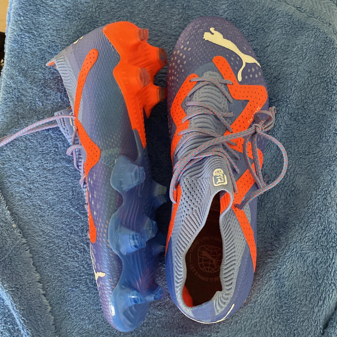 Ett par sprillans nya PUMA Future Ultimate FG/AG Supercharge - Blå/Vit/Orange som jag köpte i fel storlek och inte har kvittot kvar. ⚠️ Högsta modellen och kostar 3000kr i butik⚠️