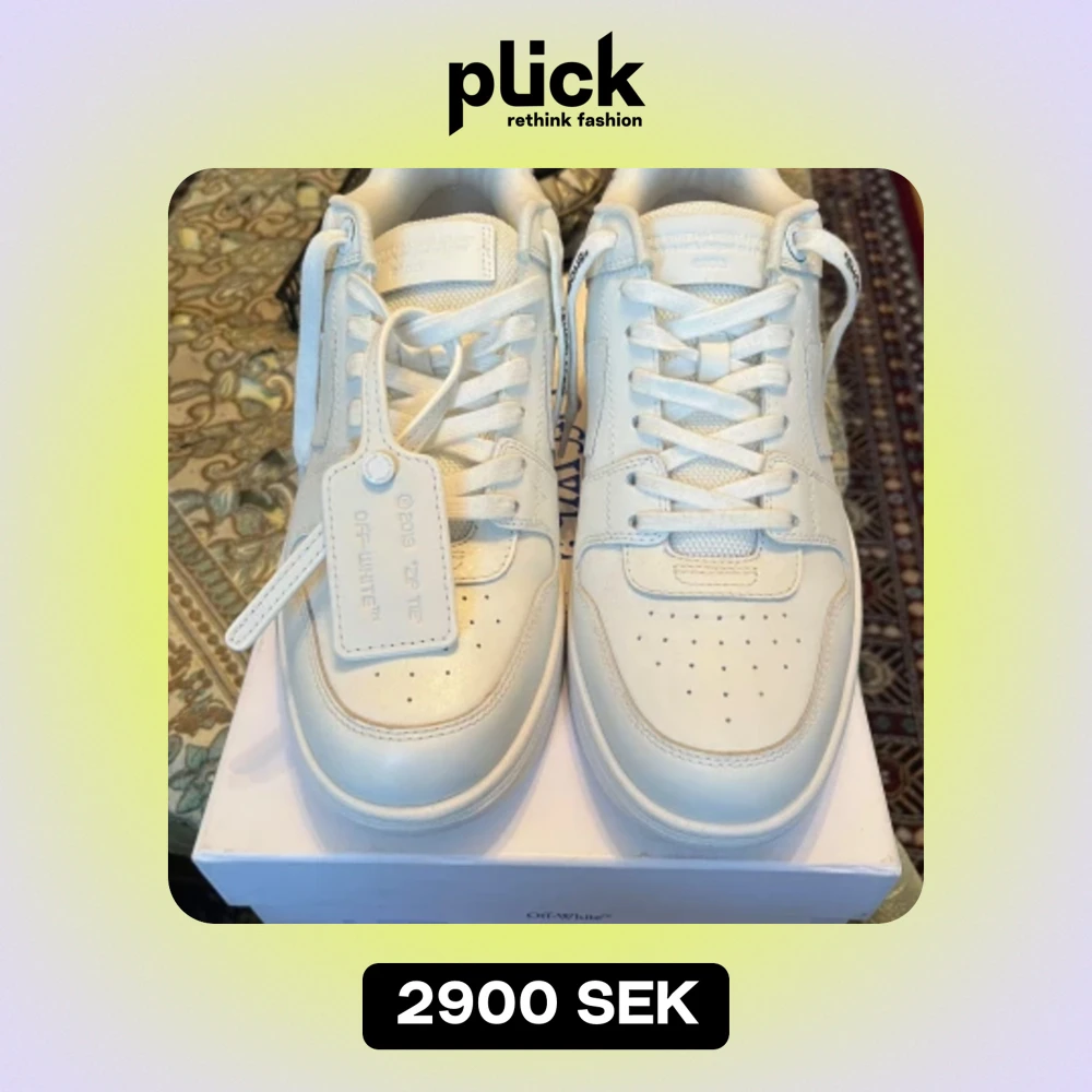 Säljer ett par vita sneakers från Off-White i skinn. De har en stilren design med snörning och en cool Off-White tagg. Perfekta för både vardag och fest. Skorna är i nyskick och kommer i originalförpackning.