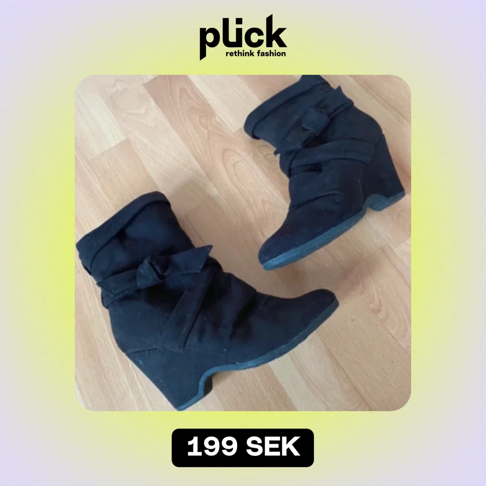 För söta kilklackar i svart mocka! Går inte att köpa i butik Köpta för 439.💕💕 Pris kan diskuteras