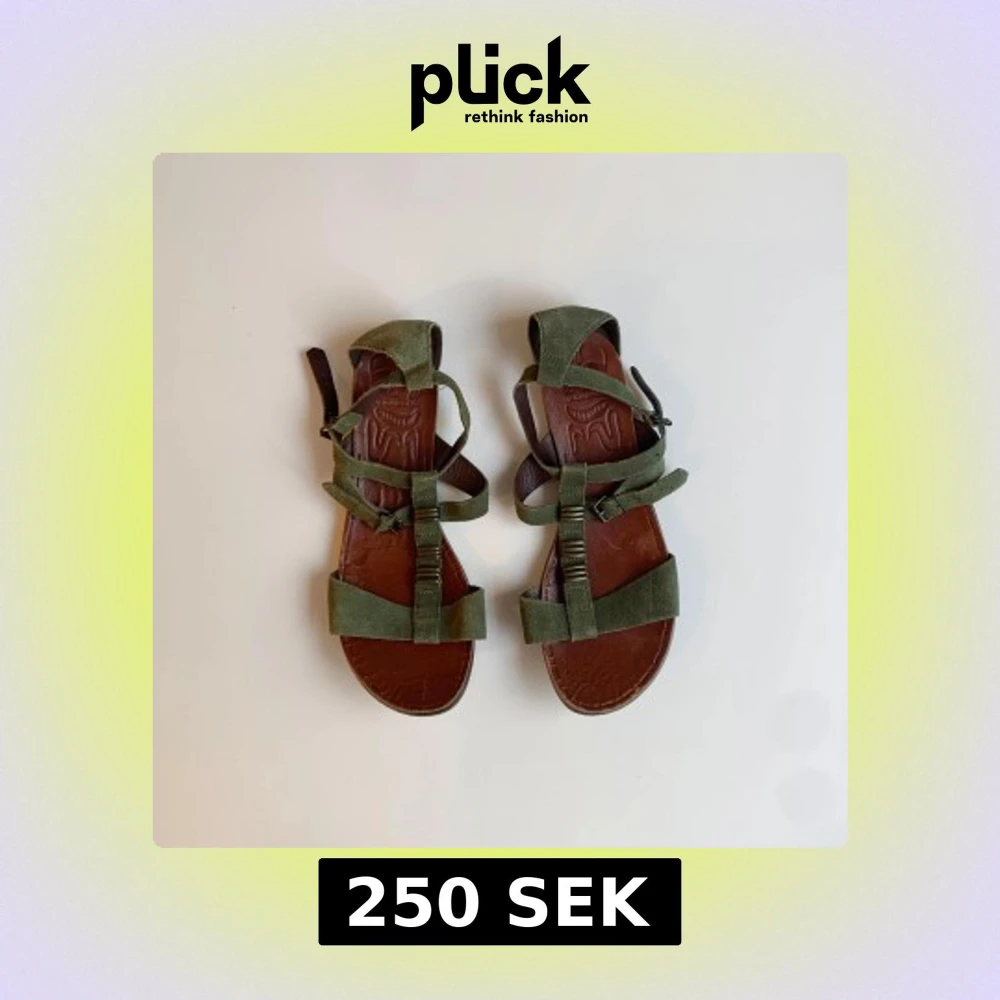 Sandaler från Vagabond i olivgrön mocka med bruna lädersulor. Remmarna har coola metall-detaljer och två justerabara spännen. Sulan har unikt mönster med ansikten och logga. Priset kan diskuteras☺️