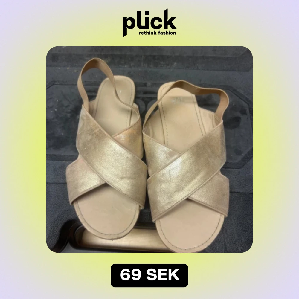Gulliga sandaler som har används tidigare men har tvättat dom dom är beige och guldiga