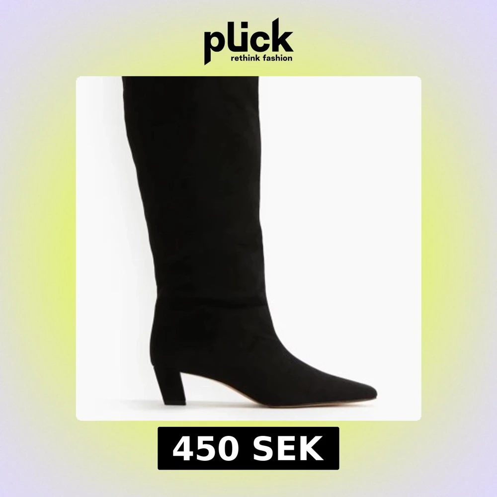 Snygga svarta stövlar med låg klack och spetsig tå. Tillverkade i mocka för en mjuk och lyxig känsla. Helt nya, alsog använda, köpte för 749kr