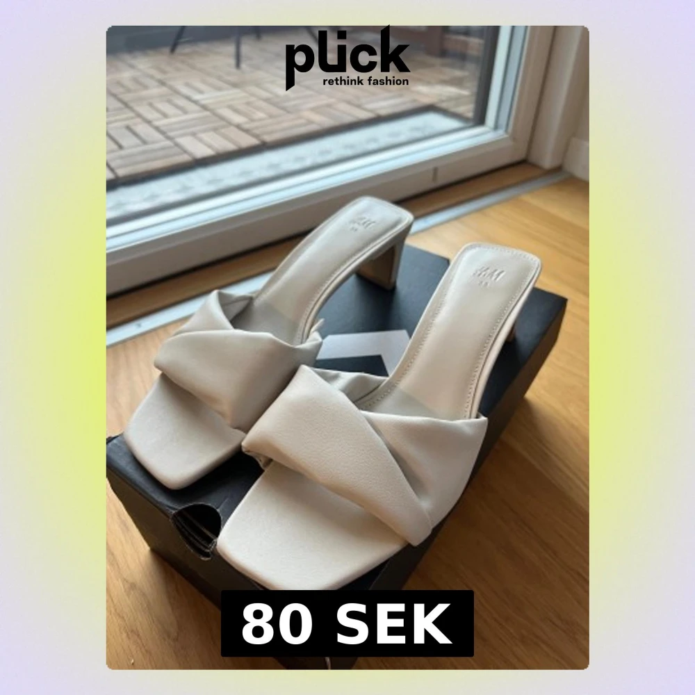Beige klackar från H&M med fyrkantig tå och 2-3cm klack. Breda omlottband över foten, lätta att gå i.
