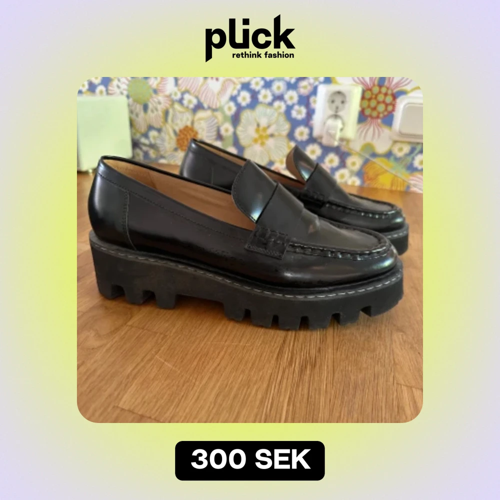 Svarta skinloafers från H&M. Mycket fint skick. Använda Max 2 ggr.