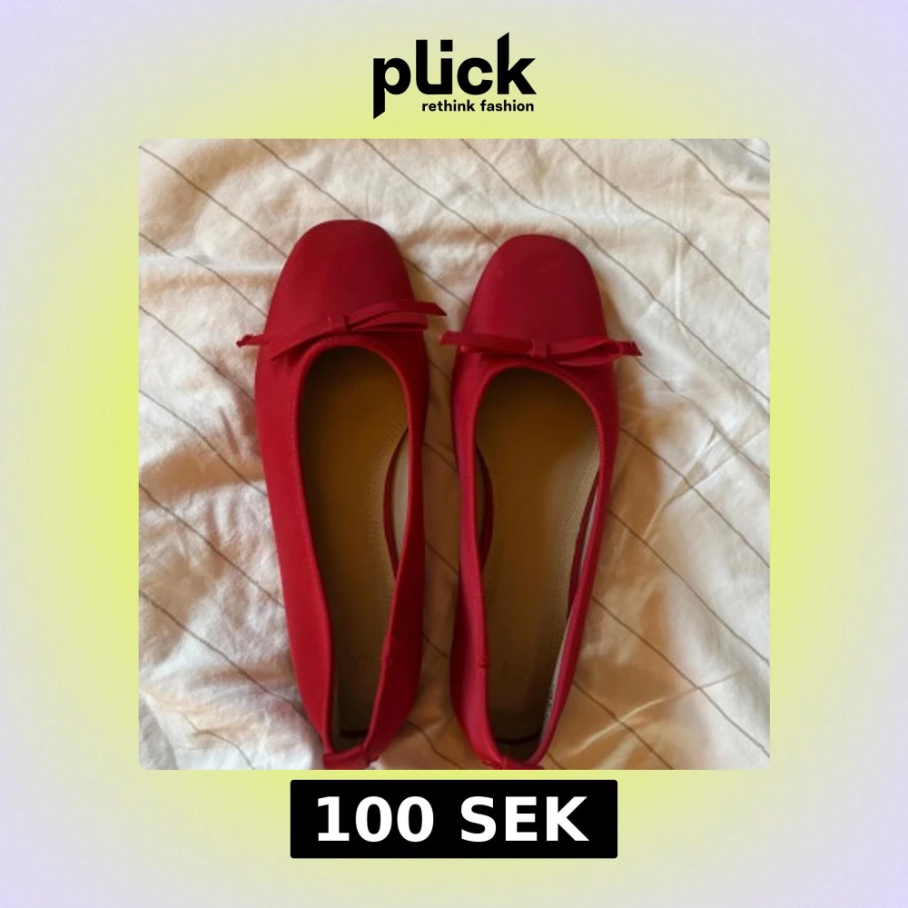 Snygga röda ballerinaskor från H&M med en söt rosett framtill storlek 39 men passar på mig som har 38 i skostorlek. Endast testade aldrig använda!