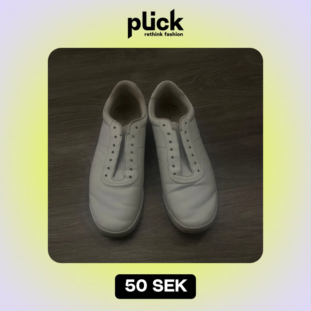 Säljer ett par vita sneakers i syntetmaterial. De har en stilren design utan snörning, vilket ger en minimalistisk look. Perfekta för vardagsbruk och passar till det mesta i garderoben. Skostorlek dam 39 💓
