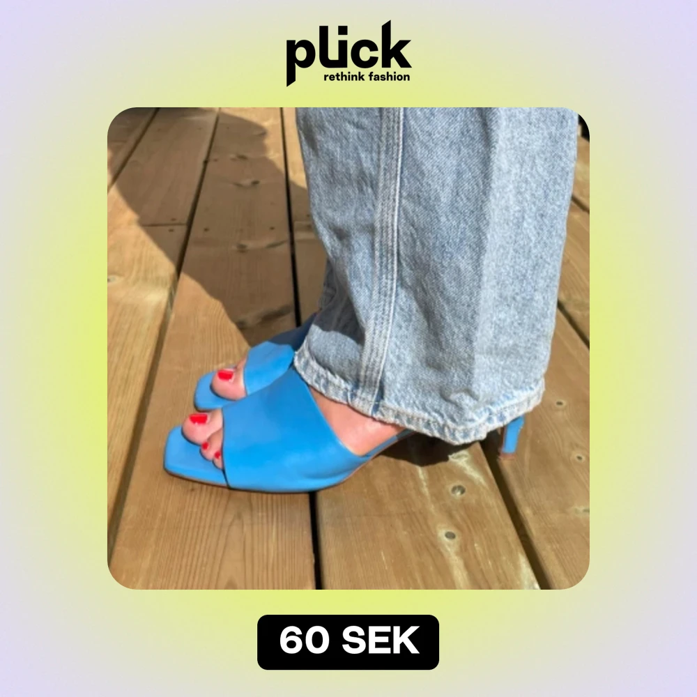 Säljer dessa blå mules från H&M i storlek i storlek 40. Jag har normalt sett storlek 40/41 och dem passar mig! Bekväma och ganska enkla att gå i samt riktigt snygga till jeans! Det svarta på sulan är från ett plåster och syns ej på💕