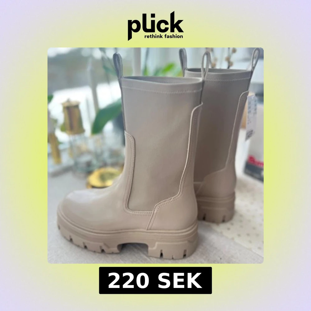 Snygga beige boots från H&M med grov sula och dragflikar upptill. Perfekta för en stilren look.