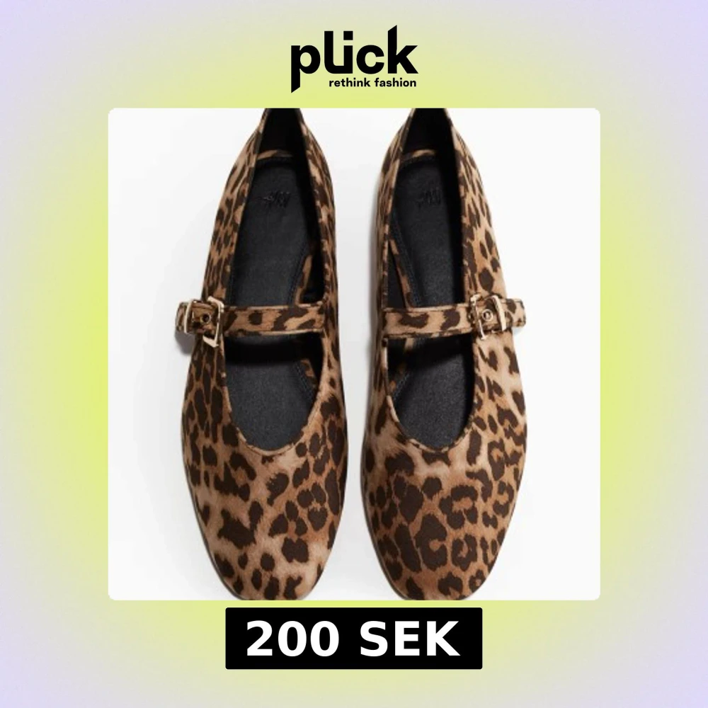 Säljer ett par ballerinaskor från HM med leopardmönster och justerbart spänne över foten. Endast testade, var för små. Nypris 299