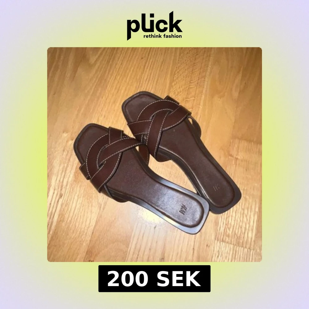 Snygga bruna sandaler från H&M med korsade remmar och vita sömmar. Fina till sommaren. Använda en gång 🥰