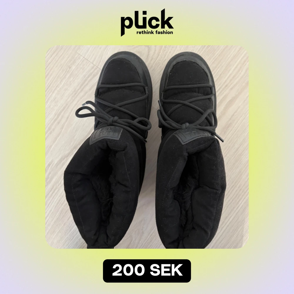 Säljer ett par svarta vinterboots i mycket bra skick. De är varma och perfekta för kalla dagar. Skorna har en snygg snörning framtill och är gjorda i ett slitstarkt material. Perfekta för vinterns alla äventyr! Från hm och påminner om inuikii