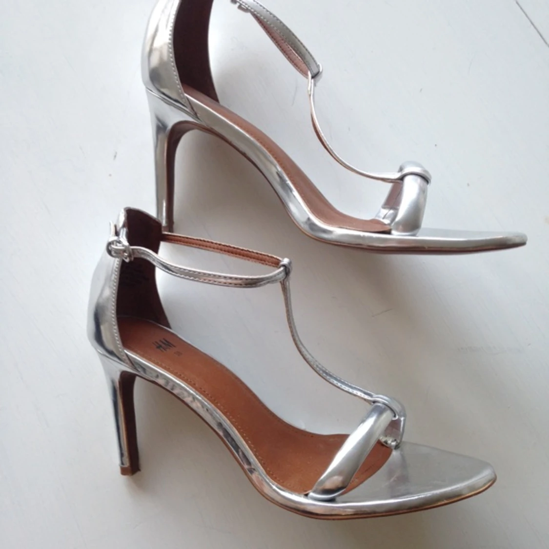 Silvriga sandaletter från HM. Väldigt bra skick, använda en gång på bröllop. Säljs nu då de ej går ihop med min stil i övrigt