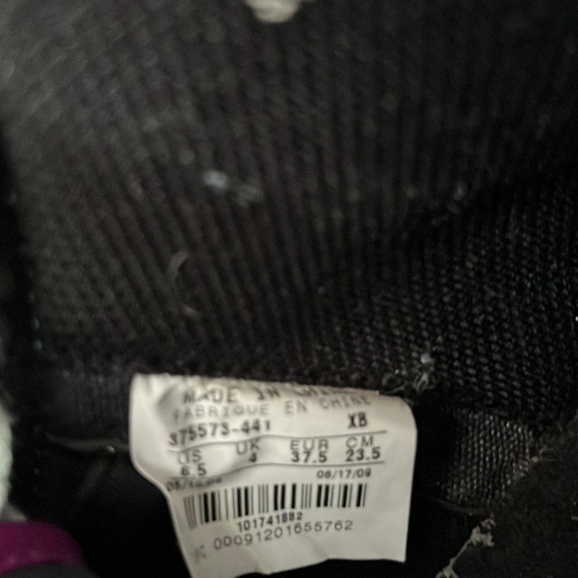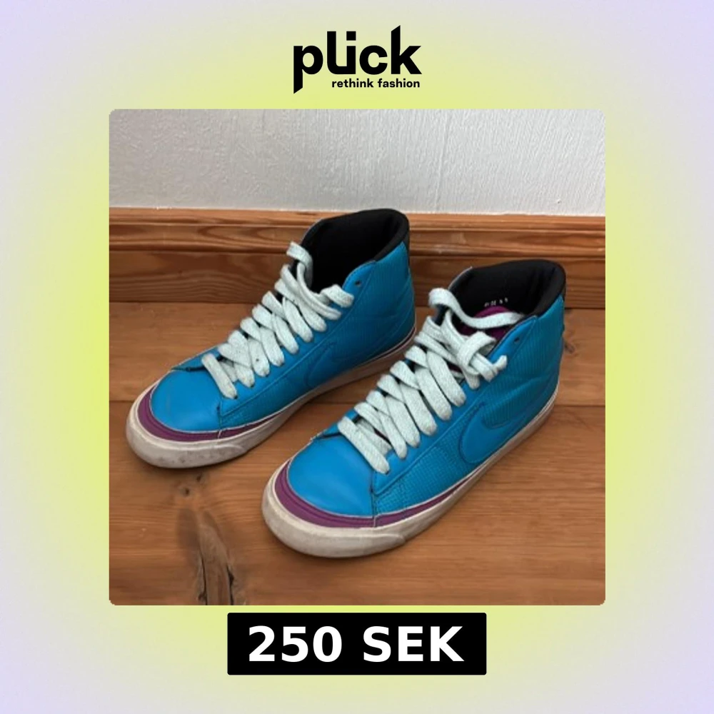 Snygga blå Nike sneakers med högt skaft och vita snören. Skorna har en lila detalj runt sulan och svart insida. Använda endast ett fåtal gånger.