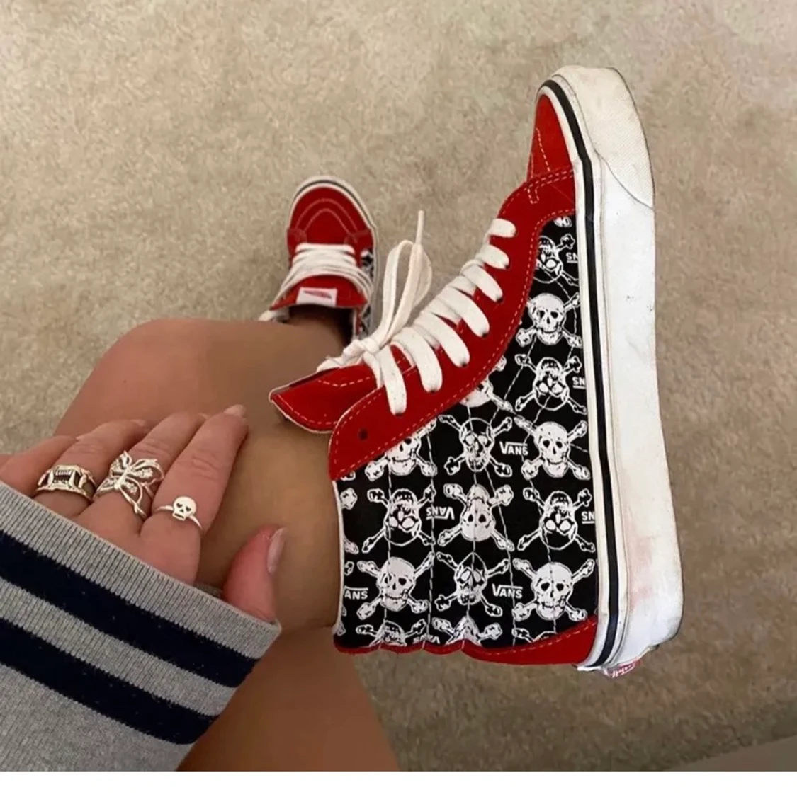 Intressekoll på mina röda Vans me döskallar i storlek 38,5!🖤 Jättecoola men har inte fått så mycket användning för dom som jag hade hoppats på! Bilden är lånad så hör av er om ni vill ha egna bilder💙 Står ej för frakt! Köpta för 949 kr på Vans hemsida💙 De är i bra skick men har en liten slitning på insidan i skon vid hälen men den känns inte av, skriv för bild🙌